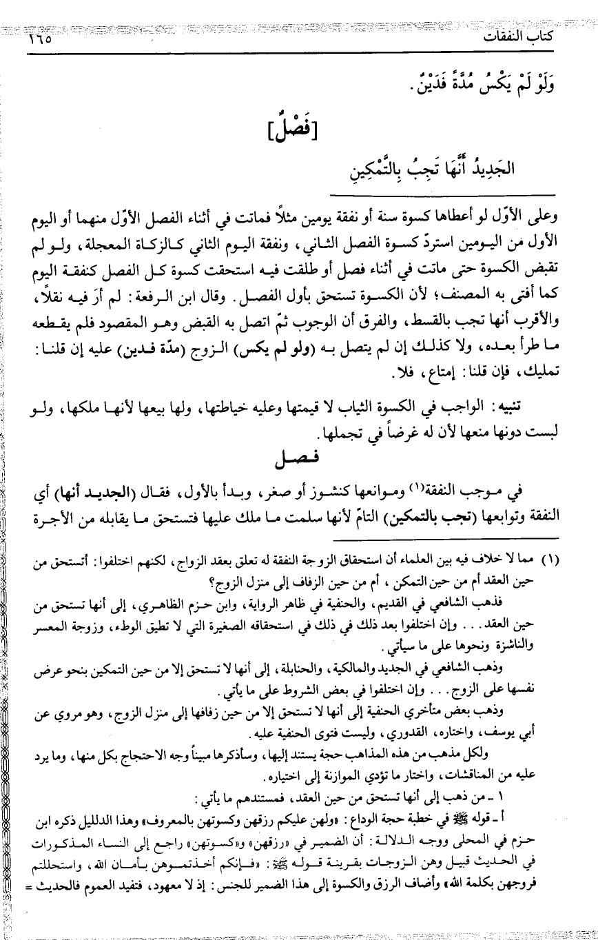 فَصْلٌ فِي مُوجِبِ النَّفَقَةِ وَمَوَانِعِهَا كَنُشُوزٍ أَوْ صِغَرٍ، وَبَدَأَ بِالْأَوَّلِ، فَقَالَ (الْجَدِيدُ أَنَّهَا) أَيْ النَّفَقَةَ وَتَوَابِعَهَا (تَجِبُ بِالتَّمْكِينِ) التَّامِّ لِأَنَّهَا سَلَّمَتْ مَا مَلَكَ عَلَيْهَا فَتَسْتَحِقُّ مَا يُقَابِلُهُ مِنْ الْأُجْرَةِ