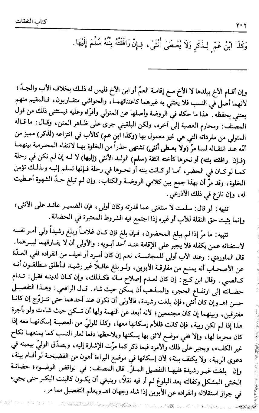 ـــــــــــــــــــــــــــــQوَإِنْ أَقَامَ الْأَخُ بِبَلَدِهَا لَا الْأَخُ مَعَ إقَامَةِ الْعَمِّ أَوْ ابْنِ الْأَخِ فَلَيْسَ لَهُ ذَلِكَ بِخِلَافِ الْأَبِ وَالْجَدِّ؛ لِأَنَّهُمَا أَصْلٌ فِي النَّسَبِ فَلَا يَعْتَنِي بِهِ غَيْرُهُمَا كَاعْتِنَائِهِمَا، وَالْحَوَاشِي مُتَقَارِبُونَ، فَالْمُقِيمُ مِنْهُمْ يَعْتَنِي بِحِفْظِهِ. هَذَا مَا حَكَاهُ فِي الرَّوْضَةِ وَأَصْلِهَا عَنْ الْمُتَوَلِّي وَأَقَرَّاهُ وَعَلَيْهِ فَيُسْتَثْنَى ذَلِكَ مِنْ قَوْلِ الْمُصَنِّفِ: وَمَحَارِمُ الْعَصَبَةِ إلَى آخِرِهِ، وَلَكِنَّ الْبُلْقِينِيُّ جَرَى عَلَى ظَاهِرِ الْمَتْنِ، وَقَالَ: مَا قَالَهُ الْمُتَوَلِّي مِنْ مُفْرَدَاتِهِ الَّتِي هِيَ غَيْرُ مَعْمُولٍ بِهَا (وَكَذَا ابْنُ عَمٍّ) كَالْأَبِ فِي انْتِزَاعِهِ (لِذَكَرٍ) مُمَيِّزٍ مِنْ أُمِّهِ عِنْدَ انْتِقَالِهِ لِمَا مَرَّ (وَلَا يُعْطَى أُنْثَى) تُشْتَهَى حَذَرًا مِنْ الْخَلْوَةِ بِهَا لِانْتِفَاءِ الْمَحْرَمِيَّةِ بَيْنَهُمَا (فَإِنْ رَافَقَتْهُ بِنْتُهُ) أَوْ نَحْوُهَا كَأُخْتِهِ الثِّقَةِ (سُلِّمَ) الْوَلَدُ الْأُنْثَى (إلَيْهَا) لَا لَهُ إنْ لَمْ تَكُنْ فِي رِحْلَةٍ كَمَا لَوْ كَانَ فِي الْحَضَرِ، أَمَّا لَوْ كَانَتْ بِنْتُهُ أَوْ نَحْوُهَا فِي رِحْلَةٍ فَإِنَّهَا تُسَلَّمُ إلَيْهِ وَبِذَلِكَ تُؤْمَنُ الْخَلْوَةُ، وَقَدْ مَرَّ أَنَّ بِهَذَا جَمْعٌ بَيْنَ كَلَامَيْ الرَّوْضَةِ وَالْكِتَابِ، وَإِنْ لَمْ تَبْلُغْ حَدَّ الشَّهْوَةِ أُعْطِيت لَهُ، وَإِنْ نَازَعَ فِي ذَلِكَ الْأَذْرَعِيُّ.