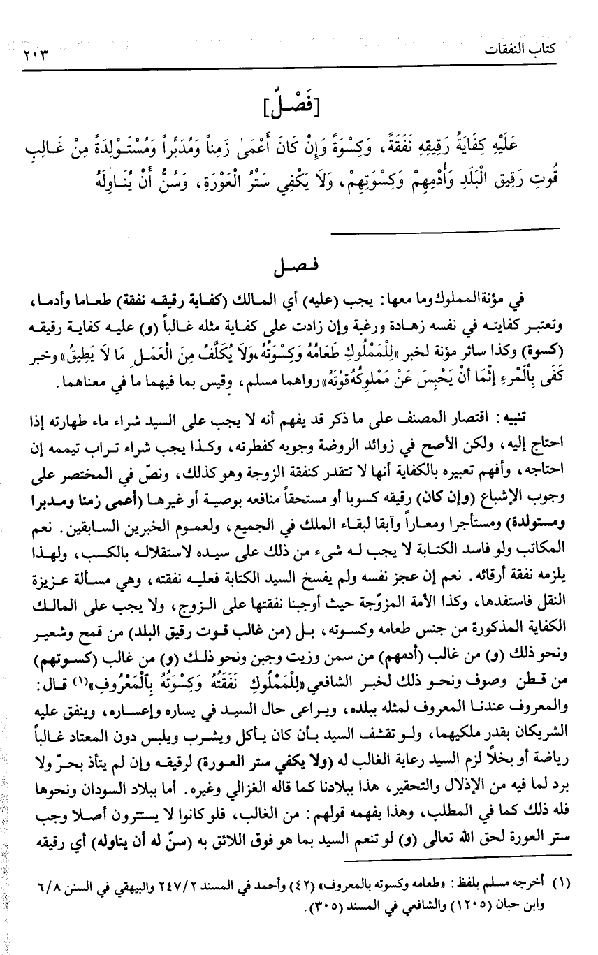 ـــــــــــــــــــــــــــــQ [فَصْل فِي مُؤْنَةِ الْمَمْلُوكِ وَمَا مَعَهَا]