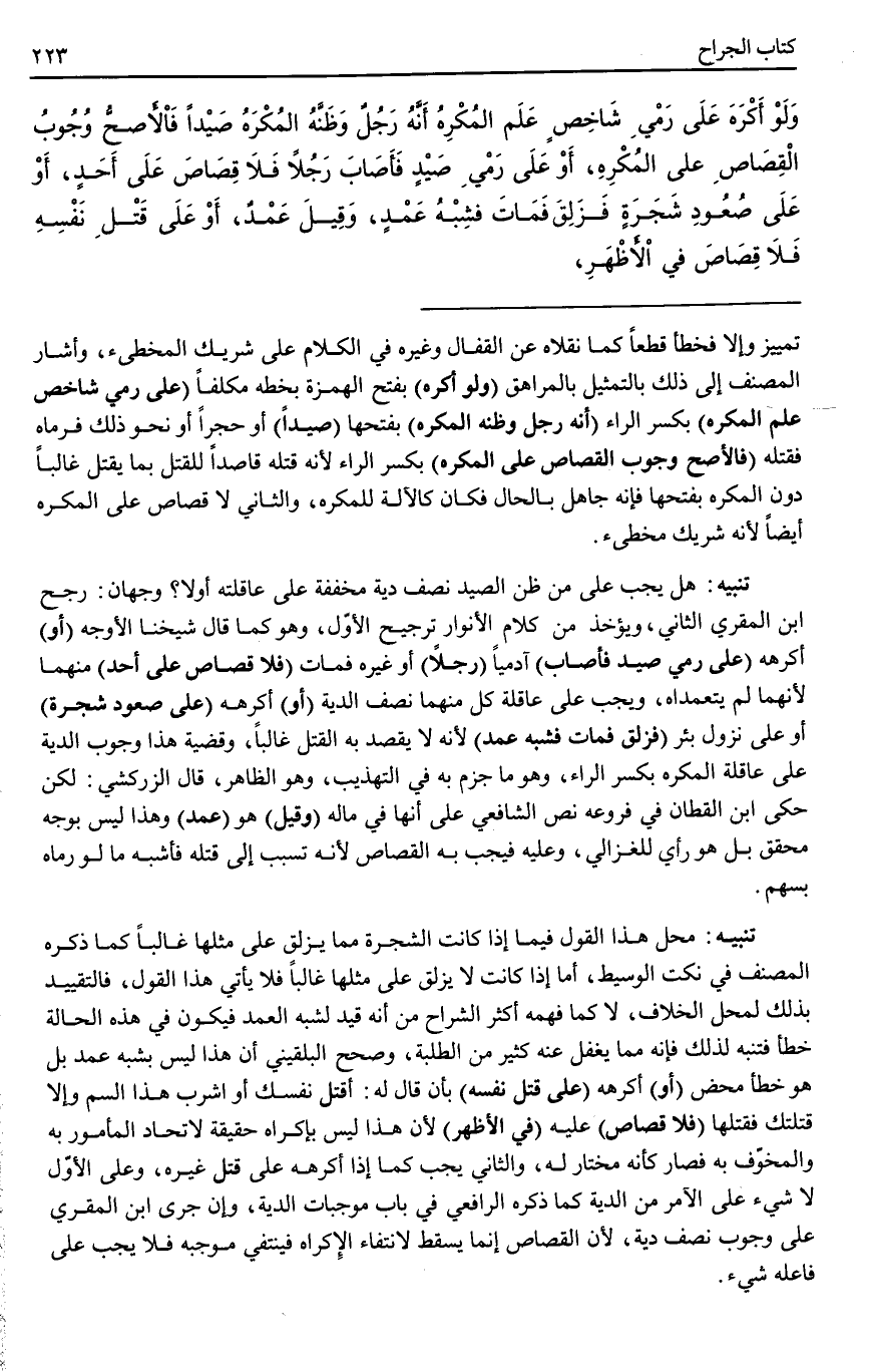ـــــــــــــــــــــــــــــQتَمْيِيزٍ وَإِلَّا فَخَطَأٌ قَطْعًا كَمَا نَقَلَاهُ عَنْ الْقَفَّالِ وَغَيْرِهِ فِي الْكَلَامِ عَلَى شَرِيكِ الْمُخْطِئِ، وَأَشَارَ الْمُصَنِّفُ إلَى ذَلِكَ بِالتَّمْثِيلِ بِالْمُرَاهِقِ (وَلَوْ أَكْرَهَ) بِفَتْحِ الْهَمْزَةِ بِخَطِّهِ مُكَلَّفًا (عَلَى رَمْيِ شَاخِصٍ عَلِمَ الْمُكْرِهُ) بِكَسْرِ الرَّاءِ (أَنَّهُ رَجُلٌ وَظَنَّهُ الْمُكْرَهُ) بِفَتْحِهَا (صَيْدًا) أَوْ حَجَرًا أَوْ نَحْوَ ذَلِكَ فَرَمَاهُ فَقَتَلَهُ (فَالْأَصَحُّ وُجُوبُ الْقِصَاصِ عَلَى الْمُكْرِهِ) بِكَسْرِ الرَّاءِ لِأَنَّهُ قَتَلَهُ قَاصِدًا لِلْقَتْلِ بِمَا يَقْتُلُ غَالِبًا دُونَ الْمُكْرَهِ بِفَتْحِهَا فَإِنَّهُ جَاهِلٌ بِالْحَالِ فَكَانَ كَالْآلَةِ لِلْمُكْرِهِ، وَالثَّانِي لَا قِصَاصَ عَلَى الْمُكْرَهِ أَيْضًا لِأَنَّهُ شَرِيكٌ مُخْطِئٌ.