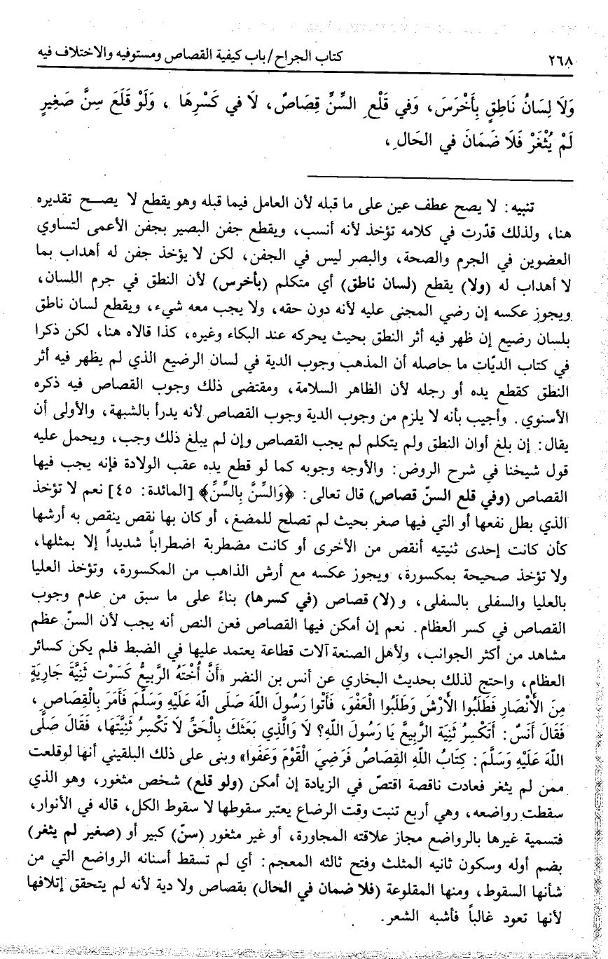 ـــــــــــــــــــــــــــــQتَنْبِيهٌ: لَا يَصِحُّ عَطْفُ عَيْنٍ عَلَى مَا قَبْلَهُ؛ لِأَنَّ الْعَامِلَ فِيمَا قَبْلَهُ وَهُوَ يُقْطَعُ لَا يَصِحُّ تَقْدِيرُهُ هُنَا، وَلِذَلِكَ قُدِّرَتْ فِي كَلَامِهِ تُؤْخَذُ لِأَنَّهُ أَنْسَبُ، وَيُقْطَعُ جَفْنُ الْبَصِيرِ بِجَفْنِ الْأَعْمَى لِتَسَاوِي الْعُضْوَيْنِ فِي الْجِرْمِ وَالصِّحَّةِ، وَالْبَصَرُ لَيْسَ فِي الْجَفْنِ، لَكِنْ لَا يُؤْخَذُ جَفْنٌ لَهُ أَهْدَابٌ بِمَا لَا أَهْدَابَ لَهُ.