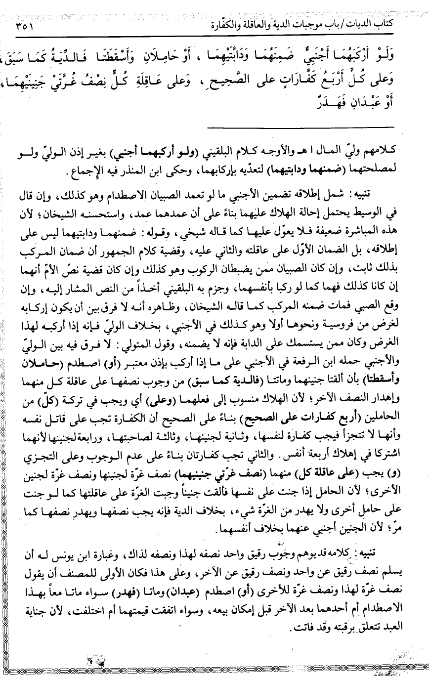 تَنْبِيهٌ: كَلَامُهُ قَدْ يُوهِمُ وُجُوبَ رَقِيقٍ وَاحِدٍ نِصْفُهُ لِهَذَا وَنِصْفُهُ لِذَاكَ، وَعِبَارَةُ ابْنِ يُونُسَ لَهُ أَنْ يُسَلَّمَ نِصْفُ رَقِيقٍ عَنْ وَاحِدٍ وَنِصْفُ رَقِيقٍ عَنْ الْآخَرِ، وَعَلَى هَذَا فَكَانَ الْأَوْلَى لِلْمُصَنِّفِ أَنْ يَقُولَ نِصْفُ غُرَّةٍ لِهَذَا وَنِصْفُ غُرَّةٍ لِلْأُخْرَى.