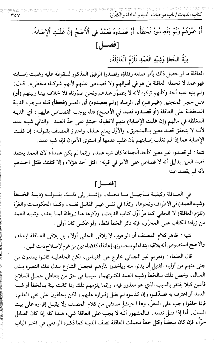 [فَصْلٌ] فِي الْعَاقِلَةِ وَكَيْفِيَّةِ تَأْجِيلِ مَا تَحْمِلُهُ، وَأَشَارَ إلَى ذَلِكَ بِقَوْلِهِ (دِيَةُ الْخَطَإِ وَشِبْهِ الْعَمْدِ) فِي الْأَطْرَافِ وَنَحْوِهَا، وَكَذَا فِي نَفْسِ غَيْرِ الْقَاتِلِ نَفْسَهُ، وَكَذَا الْحُكُومَاتُ وَالْغُرَّةُ (تَلْزَمُ الْعَاقِلَةَ) لَا الْجَانِيَ كَمَا مَرَّ أَوَّلَ كِتَابِ الدِّيَاتِ، وَذَكَرَهَا هُنَا تَوْطِئَةً لِمَا بَعْدَهُ، وَشِبْهُ الْعَمْدِ مِنْ زِيَادَةِ الْكُتَّابِ عَلَى الْمُحَرَّرِ، فَإِنَّهُ ذَكَرَ الْخَطَأَ فَقَطْ، وَلَوْ عَكَسَ كَانَ أَوْلَى.