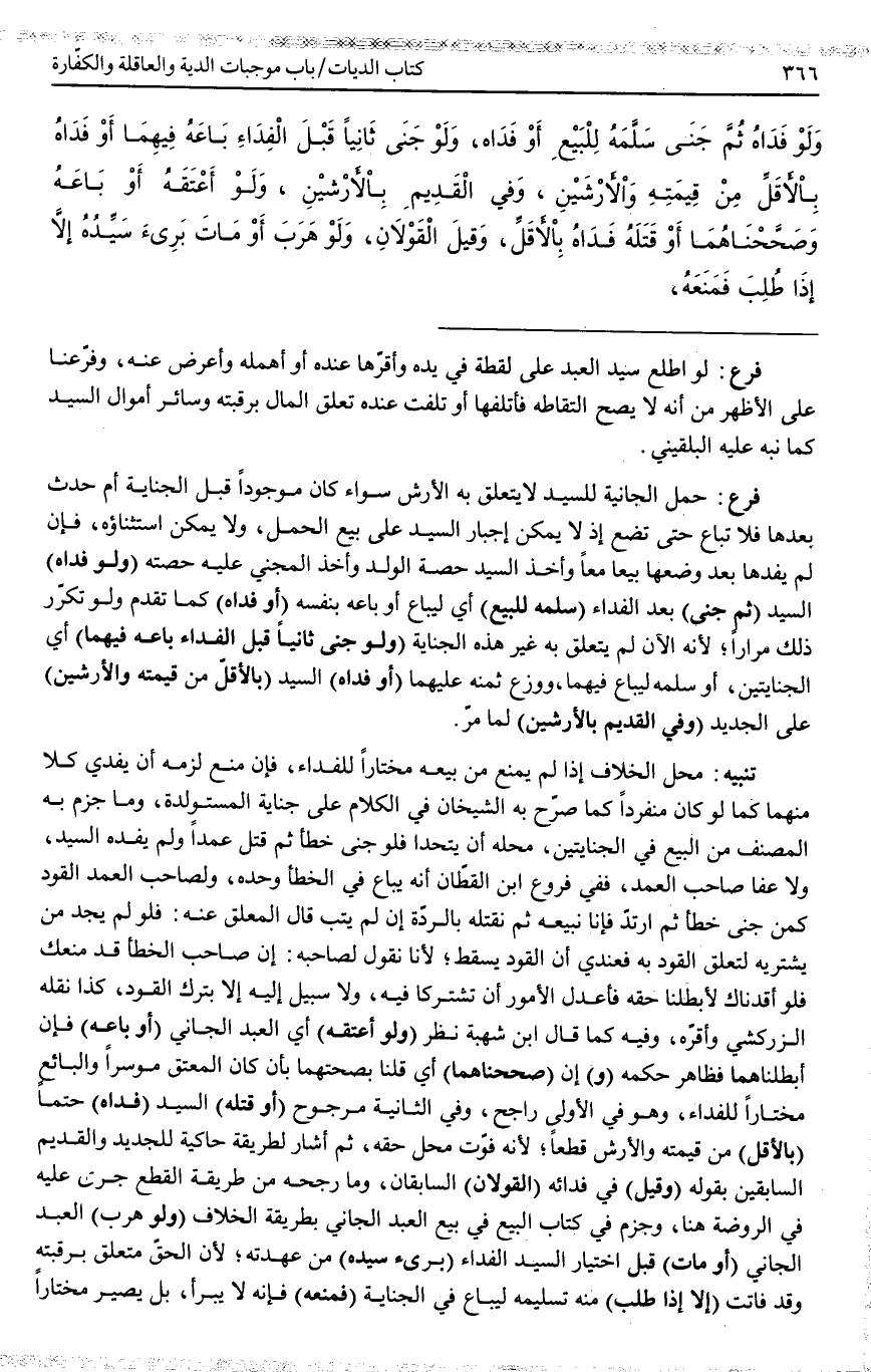 ـــــــــــــــــــــــــــــQفَرْعٌ: لَوْ اطَّلَعَ سَيِّدُ الْعَبْدِ عَلَى لُقَطَةٍ فِي يَدِهِ وَأَقَرَّهَا عِنْدَهُ أَوْ أَهْمَلَهُ وَأَعْرَضَ عَنْهُ، وَفَرَّعْنَا عَلَى الْأَظْهَرِ مِنْ أَنَّهُ لَا يَصِحُّ الْتِقَاطُهُ فَأَتْلَفَهَا أَوْ تَلِفَتْ عِنْدَهُ تَعَلَّقَ الْمَالُ بِرَقَبَتِهِ وَسَائِرُ أَمْوَالِ السَّيِّدِ كَمَا نَبَّهَ عَلَيْهِ الْبُلْقِينِيُّ. فَرْعٌ: حَمْلُ الْجَانِيَةِ لِلسَّيِّدِ لَا يَتَعَلَّقُ بِهِ الْأَرْشُ سَوَاءٌ كَانَ مَوْجُودًا قَبْلَ الْجِنَايَةِ أَمْ حَدَثَ بَعْدَهَا فَلَا تُبَاعُ حَتَّى تَضَعَ إذْ لَا يُمْكِنُ إجْبَارُ السَّيِّدِ عَلَى بَيْعِ الْحَمْلِ، وَلَا يُمْكِنُ اسْتِثْنَاؤُهُ، فَإِنْ لَمْ يَفْدِهَا بَعْدَ وَضْعِهَا بِيعَا مَعًا وَأَخَذَ السَّيِّدُ حِصَّةَ الْوَلَدِ وَأَخَذَ الْمَجْنِيُّ عَلَيْهِ حِصَّتَهُ (وَلَوْ فَدَاهُ) السَّيِّدُ (ثُمَّ جَنَى) بَعْدَ الْفِدَاءِ (سَلَّمَهُ لِلْبَيْعِ) أَيْ لِيُبَاعَ أَوْ بَاعَهُ بِنَفْسِهِ (أَوْ فَدَاهُ) كَمَا تَقَدَّمَ وَلَوْ تَكَرَّرَ ذَلِكَ مِرَارًا؛ لِأَنَّهُ الْآنَ لَمْ يَتَعَلَّقْ بِهِ غَيْرُ هَذِهِ الْجِنَايَةِ (وَلَوْ جَنَى ثَانِيًا قَبْلَ الْفِدَاءِ بَاعَهُ فِيهِمَا) أَيْ الْجِنَايَتَيْنِ، أَوْ سَلَّمَهُ لِيُبَاعَ فِيهِمَا، وَوَزَّعَ ثَمَنَهُ عَلَيْهِمَا (أَوْ فَدَاهُ) السَّيِّدُ (بِالْأَقَلِّ مِنْ قِيمَتِهِ وَالْأَرْشَيْنِ) عَلَى الْجَدِيدِ (وَفِي الْقَدِيمِ بِالْأَرْشَيْنِ) لِمَا مَرَّ.