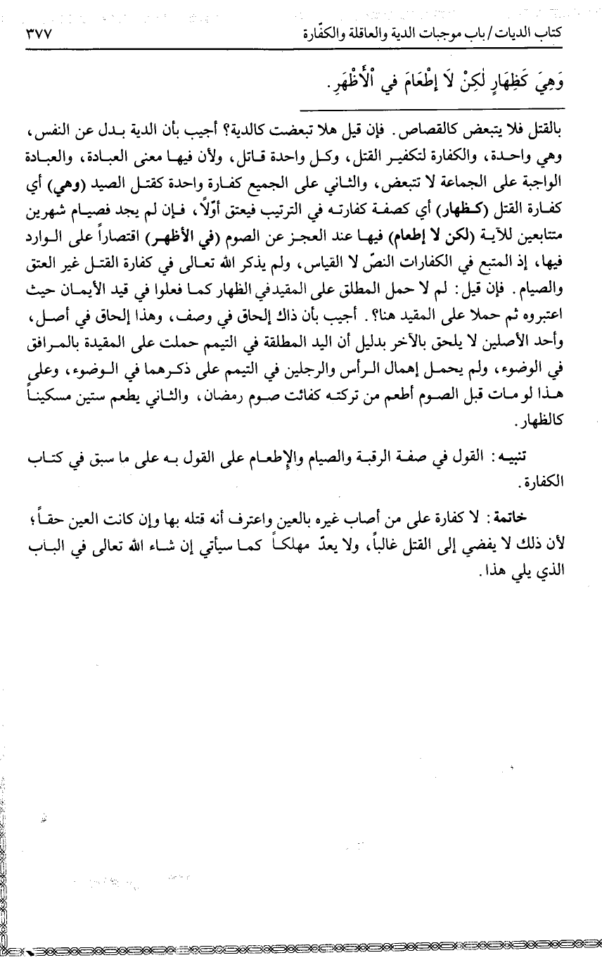 تَنْبِيهٌ: الْقَوْلُ فِي صِفَةِ الرَّقَبَةِ وَالصِّيَامِ وَالْإِطْعَامِ عَلَى الْقَوْلِ بِهِ عَلَى مَا سَبَقَ فِي كِتَابِ الْكَفَّارَةِ.