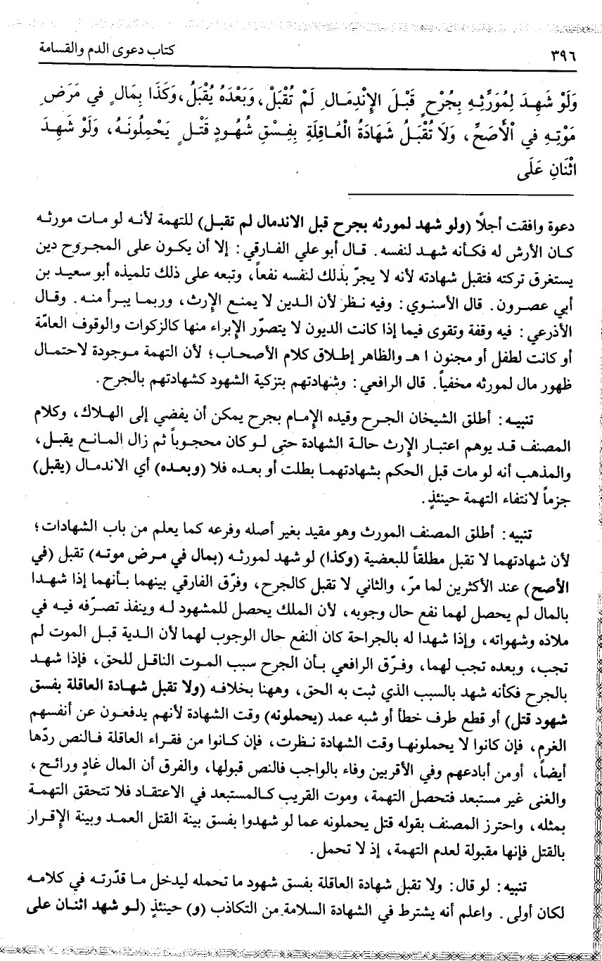 تَنْبِيهٌ: أَطْلَقَ الشَّيْخَانِ الْجُرْحَ وَقَيَّدَهُ الْإِمَامُ بِجُرْحٍ يُمْكِنُ أَنْ يُفْضِيَ إلَى الْهَلَاكِ، وَكَلَامُ الْمُصَنِّفِ قَدْ يُوهِمُ اعْتِبَارَ الْإِرْثِ حَالَةَ الشَّهَادَةِ حَتَّى لَوْ كَانَ مَحْجُوبًا ثُمَّ زَالَ الْمَانِعُ يُقْبَلُ، وَالْمَذْهَبُ أَنَّهُ لَوْ مَاتَ قَبْلَ الْحُكْمِ بِشَهَادَتِهِمَا بَطَلَتْ أَوْ بَعْدَهُ فَلَا (وَبَعْدَهُ) أَيْ الِانْدِمَالِ (يُقْبَلُ) جَزْمًا لِانْتِفَاءِ التُّهْمَةِ حِينَئِذٍ.