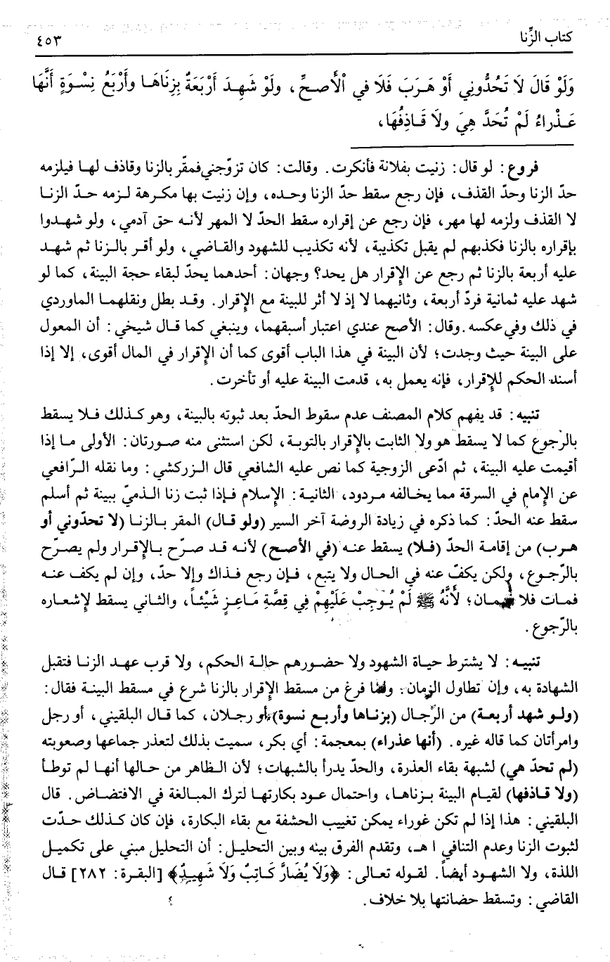 تَنْبِيهٌ: قَدْ يُفْهِمُ كَلَامُ الْمُصَنِّفِ عَدَمَ سُقُوطِ الْحَدِّ بَعْدَ ثُبُوتِهِ بِالْبَيِّنَةِ، وَهُوَ كَذَلِكَ فَلَا يَسْقُطُ بِالرُّجُوعِ كَمَا لَا يَسْقُطُ هُوَ وَلَا الثَّابِتُ بِالْإِقْرَارِ بِالتَّوْبَةِ، لَكِنْ اُسْتُثْنِيَ مِنْهُ صُورَتَانِ: الْأُولَى مَا إذَا أُقِيمَتْ عَلَيْهِ الْبَيِّنَةُ، ثُمَّ ادَّعَى الزَّوْجِيَّةَ كَمَا نَصَّ عَلَيْهِ الشَّافِعِيُّ قَالَ الزَّرْكَشِيُّ: وَمَا نَقَلَهُ الرَّافِعِيُّ عَنْ الْإِمَامِ فِي السَّرِقَةِ مِمَّا يُخَالِفُهُ مَرْدُودٌ، الثَّانِيَة: الْإِسْلَامُ فَإِذَا ثَبَتَ زِنَا الذِّمِّيِّ بِبَيِّنَةٍ ثُمَّ أَسْلَمَ سَقَطَ عَنْهُ الْحَدُّ: كَمَا ذَكَرَهُ فِي زِيَادَةِ الرَّوْضَةِ آخِرَ السِّيَرِ.