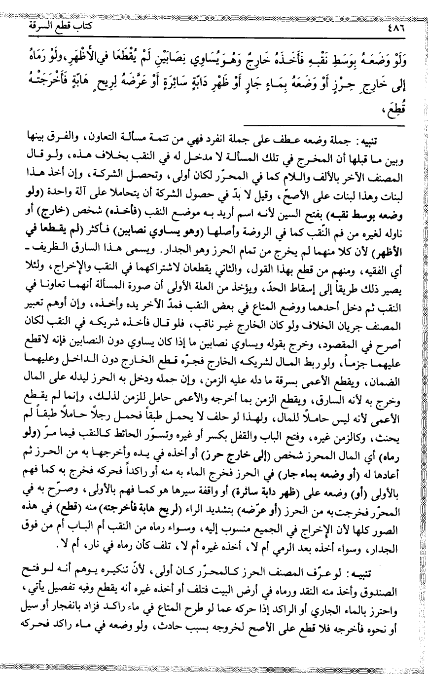 (وَلَوْ وَضَعَهُ بِوَسَطِ نَقْبِهِ) بِفَتْحِ السِّينِ لِأَنَّهُ اسْمٌ أُرِيدَ بِهِ مَوْضِعَ النَّقْبِ (فَأَخَذَهُ) شَخْصٌ (خَارِجٌ) أَوْ نَاوَلَهُ لِغَيْرِهِ مِنْ فَمِ النَّقْبِ كَمَا فِي الرَّوْضَةِ وَأَصْلِهَا (وَهُوَ يُسَاوِي نِصَابَيْنِ) فَأَكْثَرَ (لَمْ يُقْطَعَا فِي الْأَظْهَرِ) لِأَنَّ كُلًّا مِنْهُمَا لَمْ يُخْرِجْ مِنْ تَمَامِ الْحِرْزِ وَهُوَ الْجِدَارُ. وَيُسَمَّى هَذَا السَّارِقُ الظَّرِيفُ - أَيْ: الْفَقِيهُ، وَمِنْهُمْ مَنْ قَطَعَ بِهَذَا الْقَوْلِ، وَالثَّانِي يُقْطَعَانِ لِاشْتِرَاكِهِمَا فِي النَّقْبِ وَالْإِخْرَاجِ، وَلِئَلَّا يَصِيرَ ذَلِكَ طَرِيقًا إلَى إسْقَاطِ الْحَدِّ، وَيُؤْخَذُ مِنْ الْعِلَّةِ الْأُولَى أَنَّ صُورَةَ الْمَسْأَلَةِ أَنَّهُمَا تَعَاوَنَا فِي النَّقْبِ ثُمَّ دَخَلَ أَحَدُهُمَا وَوَضَعَ الْمَتَاعَ فِي بَعْضِ النَّقْبِ فَمَدَّ الْآخَرُ يَدَهُ وَأَخَذَهُ، وَإِنْ أَوْهَمَ تَعْبِيرُ الْمُصَنِّفِ جَرَيَانَ الْخِلَافِ وَلَوْ كَانَ الْخَارِجُ غَيْرَ نَاقِبٍ، فَلَوْ قَالَ فَأَخَذَهُ شَرِيكُهُ فِي النَّقْبِ لَكَانَ أَصَرْحَ فِي الْمَقْصُودِ، وَخَرَجَ بِقَوْلِهِ وَيُسَاوِي نِصَابَيْنِ مَا إذَا كَانَ يُسَاوِي دُونَ النِّصَابَيْنِ فَإِنَّهُ لَا قَطْعَ عَلَيْهِمَا جَزْمًا، وَلَوْ رَبَطَ الْمَالَ لِشَرِيكِهِ الْخَارِجِ فَجَرَّهُ قُطِعَ الْخَارِجُ دُونَ الدَّاخِلِ وَعَلَيْهِمَا الضَّمَانُ.