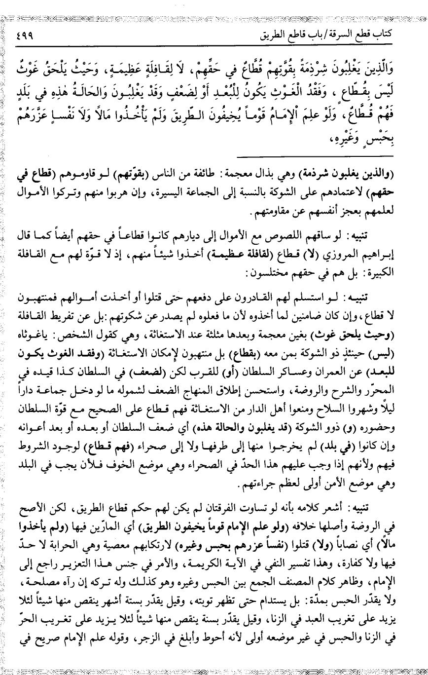 وَاَلَّذِينَ يَغْلِبُونَ شِرْذِمَةً بِقُوَّتِهِمْ قُطَّاعٌ فِي حَقِّهِمْ، لَا لِقَافِلَةٍ عَظِيمَةٍ، وَحَيْثُ يَلْحَقُ غَوْثٌ لَيْسَ بِقُطَّاعٍ، وَفَقْدُ الْغَوْثِ يَكُونُ لِلْبُعْدِ أَوْ لِضَعْفٍ وَقَدْ يَغْلِبُونَ وَالْحَالَةُ هَذِهِ فِي بَلَدٍ فَهُمْ قُطَّاعٌ.