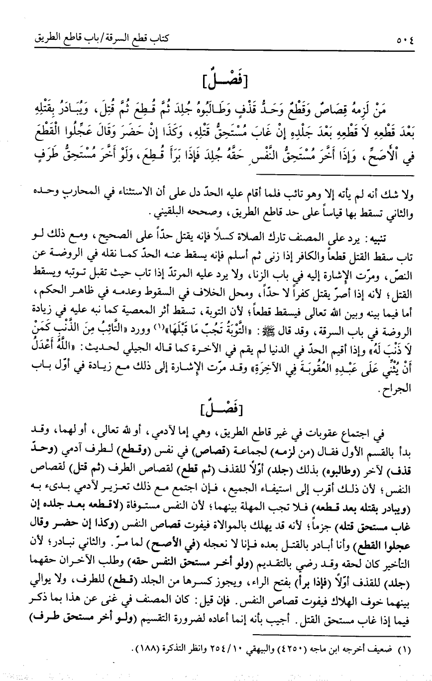 [فَصْلٌ] فِي اجْتِمَاعِ عُقُوبَاتٍ فِي غَيْرِ قَاطِعِ الطَّرِيقِ، وَهِيَ إمَّا لِآدَمِيٍّ، أَوْ لِلَّهِ تَعَالَى، أَوْ لَهُمَا، وَقَدْ بَدَأَ بِالْقِسْمِ الْأَوَّلِ فَقَالَ (مَنْ لَزِمَهُ) لِجَمَاعَةٍ (قِصَاصٌ) فِي نَفْسٍ (وَقَطْعٌ) لِطَرَفِ آدَمِيٍّ (وَحَدُّ قَذْفٍ) لِآخَرَ (وَطَالَبُوهُ) بِذَلِكَ (جُلِدَ) أَوَّلًا لِلْقَذْفِ (ثُمَّ قُطِعَ) لِقِصَاصِ الطَّرَفِ (ثُمَّ قُتِلَ) لِقِصَاصِ النَّفْسِ؛ لِأَنَّ ذَلِكَ أَقْرَبُ إلَى اسْتِيفَاءِ الْجَمِيعِ، فَإِنْ اجْتَمَعَ مَعَ ذَلِكَ تَعْزِيرٌ لِآدَمِيٍّ بُدِئَ بِهِ (وَيُبَادَرُ بِقَتْلِهِ بَعْدَ قَطْعِهِ) فَلَا تَجِبُ الْمُهْلَةُ بَيْنَهُمَا؛ لِأَنَّ النَّفْسَ مُسْتَوْفَاةٌ (لَا قَطْعُهُ بَعْدَ جَلْدِهِ إنْ غَابَ مُسْتَحِقُّ قَتْلِهِ) جَزْمًا؛ لِأَنَّهُ قَدْ يُهْلَكُ بِالْمُوَالَاةِ فَيَفُوتُ قِصَاصُ النَّفْسِ (وَكَذَا إنْ حَضَرَ وَقَالَ عَجِّلُوا الْقَطْعَ) وَأَنَا أُبَادِرُ بِالْقَتْلِ بَعْدَهُ فَإِنَّا لَا نُعَجِّلُهُ (فِي الْأَصَحِّ) لِمَا مَرَّ. وَالثَّانِي نُبَادِرُ؛ لِأَنَّ التَّأْخِيرَ كَانَ لِحَقِّهِ وَقَدْ رَضِيَ بِالتَّقْدِيمِ (وَلَوْ أَخَّرَ مُسْتَحِقُّ النَّفْسِ حَقَّهُ) وَطَلَبَ الْآخَرَانِ حَقَّهُمَا (جُلِدَ) لِلْقَذْفِ أَوَّلًا (فَإِذَا بَرِئَ) بِفَتْحِ الرَّاءِ، وَيَجُوزُ كَسْرُهَا مِنْ الْجَلْدِ (قُطِعَ) لِلطَّرَفِ، وَلَا يُوَالِي بَيْنَهُمَا خَوْفَ الْهَلَاكِ فَيَفُوتُ قِصَاصُ النَّفْسِ. فَإِنْ قِيلَ: كَانَ الْمُصَنِّفُ فِي غِنًى عَنْ هَذَا بِمَا ذَكَرَ فِيمَا إذَا غَابَ مُسْتَحِقُّ الْقَتْلِ.