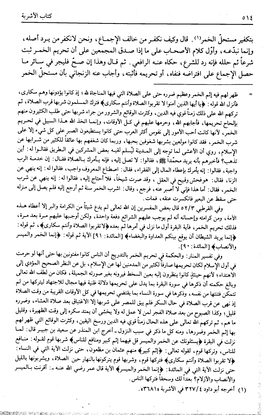 ـــــــــــــــــــــــــــــQبِتَكْفِيرِ مُسْتَحِلِّ الْخَمْرِ. قَالَ وَكَيْفَ نُكَفِّرُ مَنْ خَالَفَ الْإِجْمَاعَ، وَنَحْنُ لَا نُكَفِّرُ مَنْ يَرُدُّ أَصْلَهُ، وَإِنَّمَا نُبَدِّعُهُ، وَأَوَّلَ كَلَامَ الْأَصْحَابِ عَلَى مَا إذَا صَدَّقَ الْمُجْمِعِينَ عَلَى أَنَّ تَحْرِيمَ الْخَمْرِ ثَبَتَ شَرْعًا ثُمَّ حَلَّلَهُ فَإِنَّهُ رَدٌّ لِلشَّرْعِ، حَكَاهُ عَنْهُ الرَّافِعِيُّ. ثُمَّ قَالَ وَهَذَا إنْ صَحَّ فَلْيَجْرِ فِي سَائِرِ مَا حَصَلَ الْإِجْمَاعُ عَلَى افْتِرَاضِهِ فَنَفَاهُ، أَوْ تَحْرِيمِهِ فَأَثْبَتَهُ.