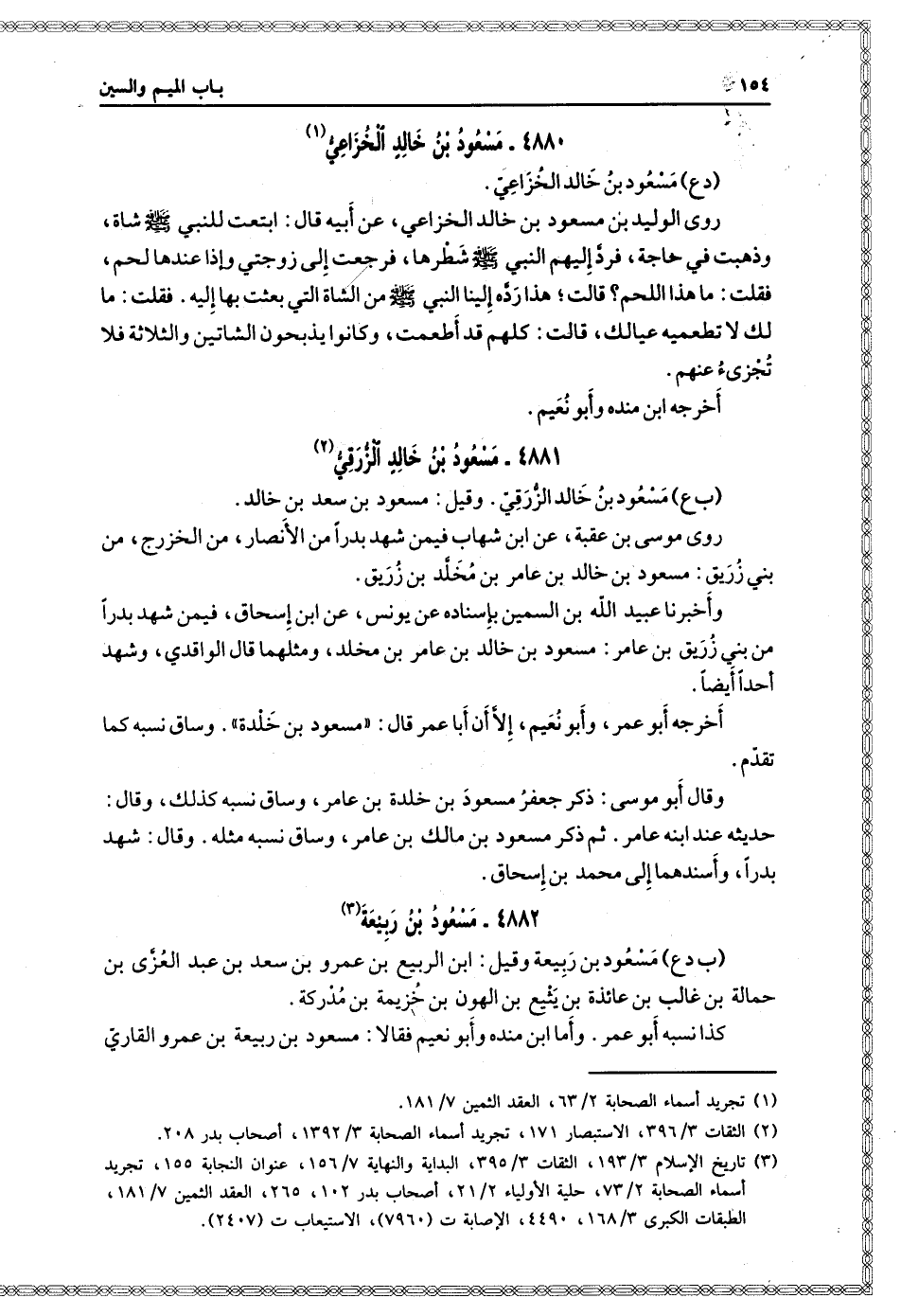 (١٥١٢) وَأَخْبَرَنَا عُبَيْدُ اللَّهِ بْنُ السَّمِينِ بِإِسْنَادِهِ، عن يُونُسَ، عن ابْنِ إِسْحَاقَ، فِيمَنْ شَهِدَ بَدْرًا مِنْ بَنِي زُرَيْقِ بْنِ عَامِرٍ: مَسْعُودُ بْنُ خَالِدِ بْنِ عَامِرِ بْنِ مَخْلَدٍ.
