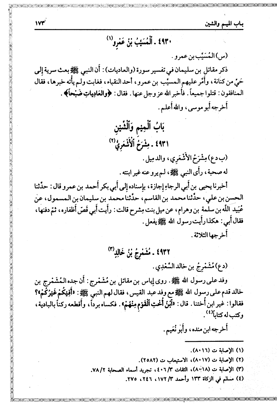 س: المسيب بْن عَمْرو ذكر مقاتل بْن سُلَيْمَان فِي تفسير سورة {وَالْعَادِيَاتِ} ، أن النَّبِيّ صَلَّى اللَّهُ عَلَيْهِ وَسَلَّمَ بعث سرية إِلَى حي من كنانة، وأمر عليهم المسيب بْن عَمْرو، أحد النقباء، فغابت ولم يأته خبرها، فقال المنافقون: قتلوا جميعا، فأخبر اللَّه عَزَّ وَجَلَّ عَنْهاُ، فقال: {وَالْعَادِيَاتِ ضَبْحًا} .