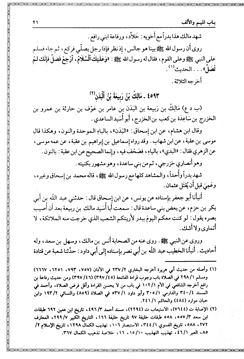 ٤٥٩٣- مالك بن ربيعة بن البدن