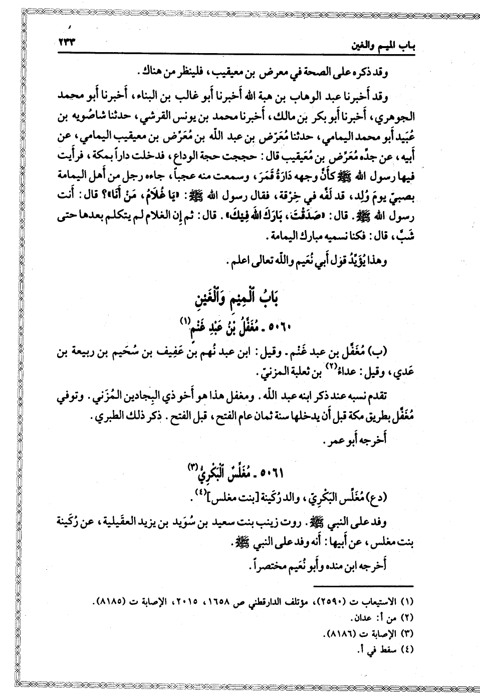 ب: مغفل بْن عبد غنم، وقيل: ابن عبد نهم بْن عفيف بْن سحيم بْن ربيعة بْن عدي، وقيل: عداء بْن ثعلبة المزني.