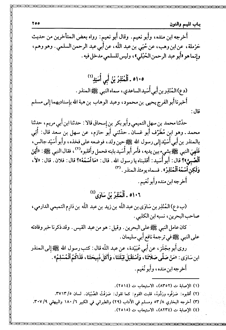 د ع: المنذر بْن أَبِي أسيد الساعدي سماه النَّبِيّ صَلَّى اللَّهُ عَلَيْهِ وَسَلَّمَ المنذر.