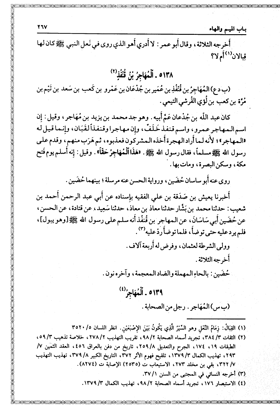 ب س: المهاجر رجل من الصحابة روى أَنَّ نعل النَّبِيّ صَلَّى اللَّهُ عَلَيْهِ وَسَلَّمَ كَانَ لَهَا قبالان.