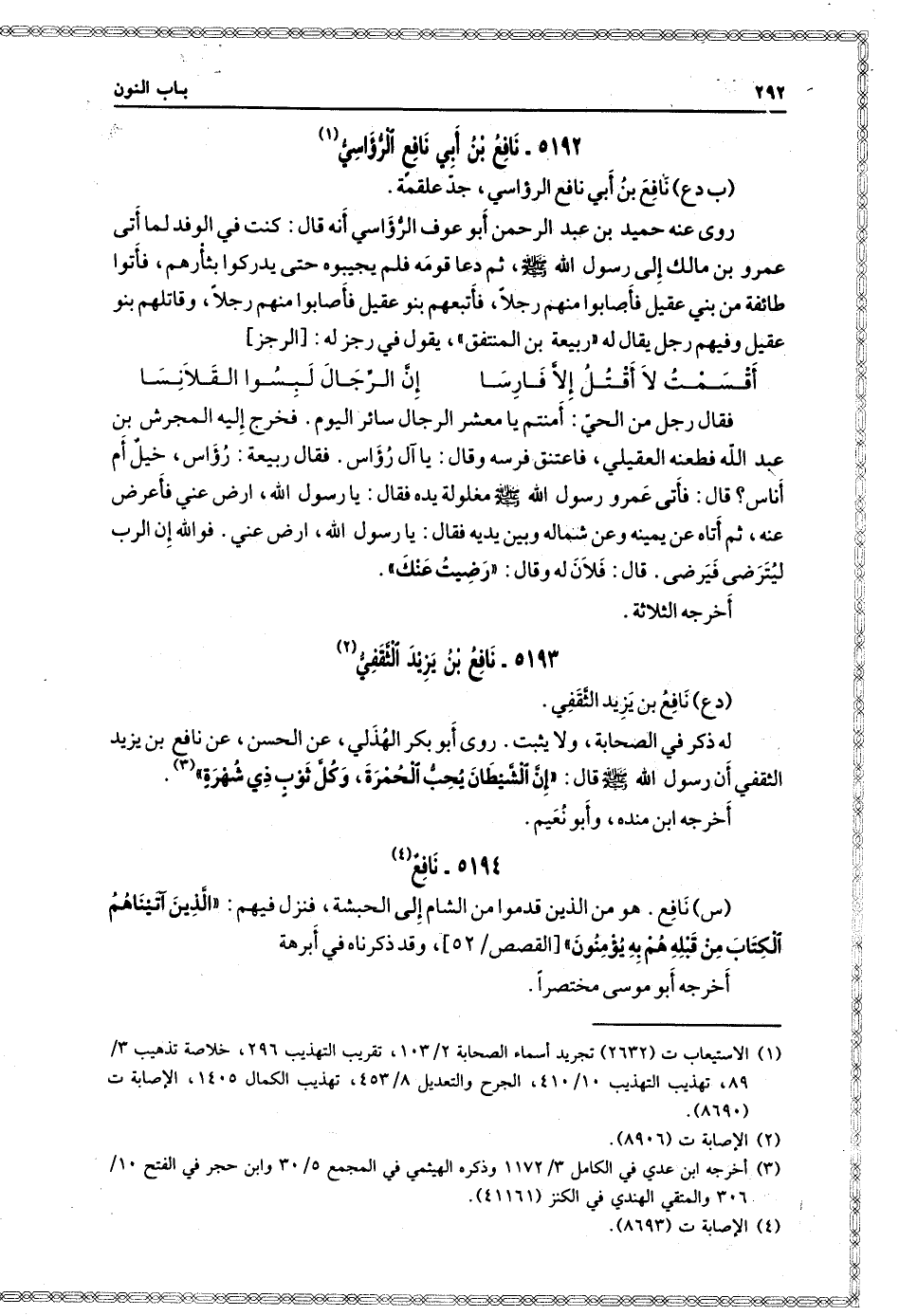 س: نَافِع هُوَ من الَّذِينَ قدموا من الشام إلى الحبشة، فنزل فيهم: {الَّذِينَ آتَيْنَاهُمُ الْكِتَابَ مِنْ قَبْلِهِ هُمْ بِهِ يُؤْمِنُونَ} ، وقد ذكرناه فِي أبرهة.