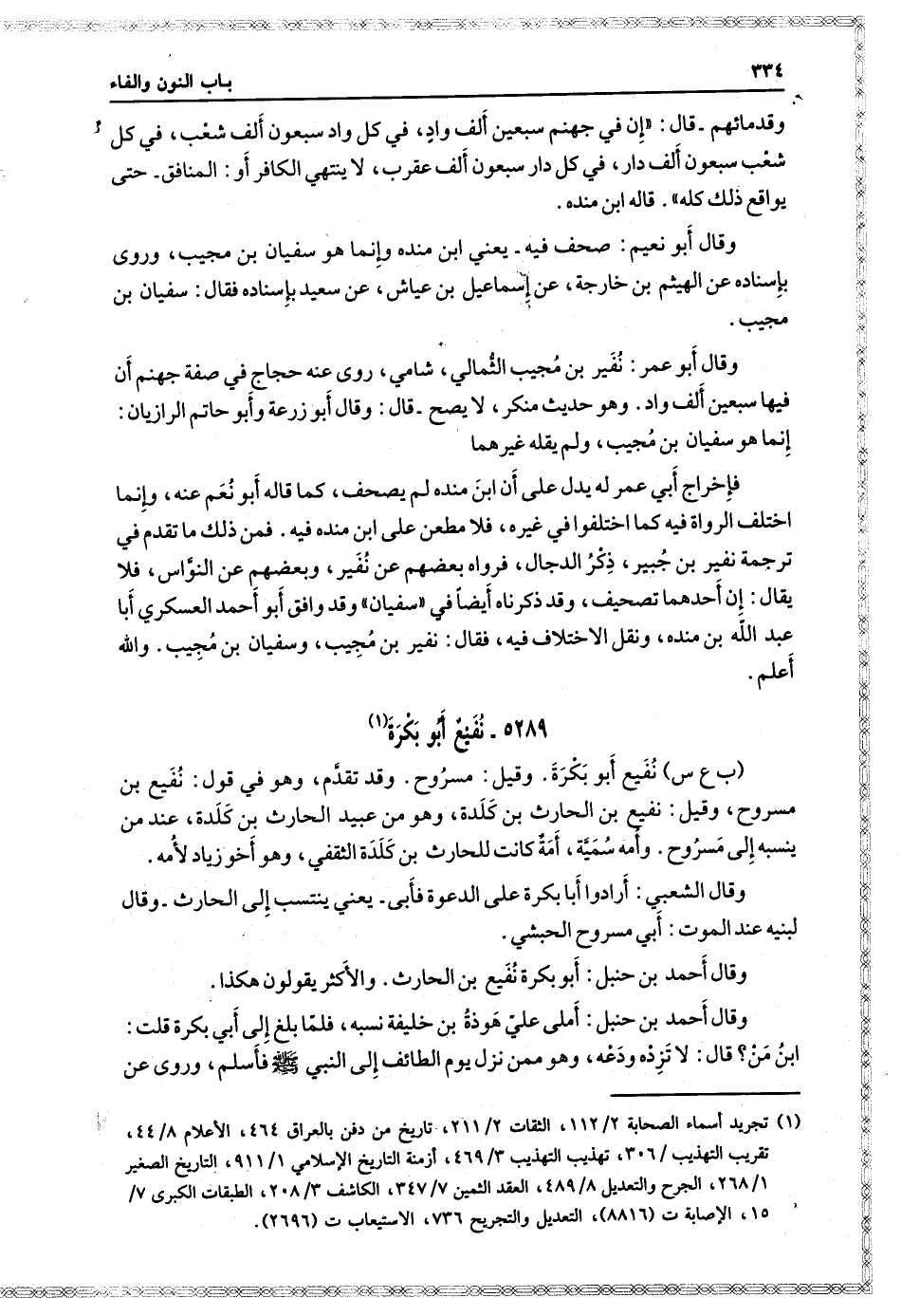 وقال أحمد بن حنبل: أملي عَليّ هوذة بن خليفة نسبه، فلما بلغ إلى أبي بكرة قلت: ابن من؟ قَالَ: لا تزده ودعه، وهو ممن نزل يوم الطائف إلى النَّبِيّ صَلَّى اللَّهُ عَلَيْهِ وَسَلَّمَ فأسلم، وروى عن النَّبِيّ صَلَّى اللَّهُ عَلَيْهِ وَسَلَّمَ أحاديث، روى عَنْهُ أَبُو عثمان النهدي، والأحنف، والحسن الْبَصْرِيّ، وَكَانَ من فضلاء الصحابة وصالحيهم، وسيرد ذكره فِي الكنى أتم من هَذَا إن شاء الله.