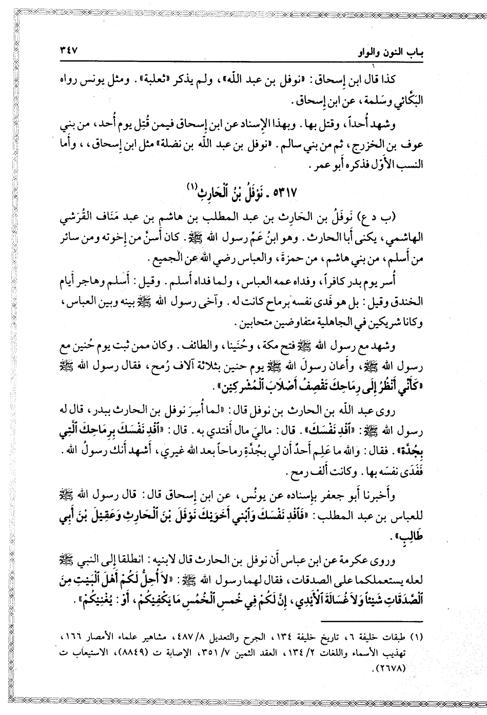 (١٦٤٦) وَأَخْبَرَنَا أَبُو جَعْفَر بٍإسناده، عن يونس، عن ابن إسحاق، قَالَ: قَالَ رسول الله صَلَّى اللَّهُ عَلَيْهِ وَسَلَّمَ للعباس بن عبد المطلب: " فافد نفسك وابني أخويك نوفل بن الحارث وعقيل بن أبي طالب " وروى عكرمة، عن ابن عباس، أن نوفل بن الحارث، قَالَ لابنيه: انطلقا إلى النَّبِيّ صَلَّى اللَّهُ عَلَيْهِ وَسَلَّمَ لعله يستعملكما عَلَى الصدقات، فقال لهما رسول الله صَلَّى اللَّهُ عَلَيْهِ وَسَلَّمَ: " لا أحل لكم أهل البيت من الصدقات شيئا ولا غسالة الأيدي، إن لكم فِي خمس الخمس ما يكفيكم، أو يغنيكم ".