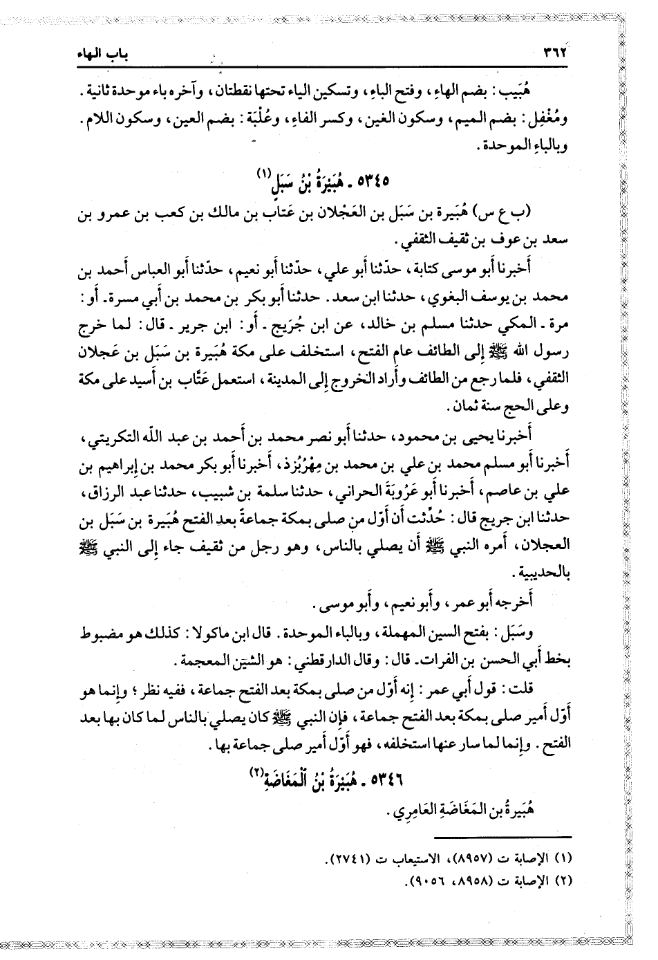 (١٦٦٢) أخبرنا يَحْيَى بن مَحْمُود، حدثنا أبو نصر مُحَمَّد بن أحمد بن عبد الله التكريتي، أخبرنا أبو مسلم مُحَمَّد بن عَليّ بن مُحَمَّد بن مهربزد، أخبرنا أبو بكر مُحَمَّد بن إِبْرَاهِيِم بن عَليّ بن عَاصِم، أخبرنا أبو عروبة الحراني، حدثنا سلمة بن شبيب، حدثنا عبد الرزاق، حدثنا ابن جريج، قَالَ: حدثت أن أول من صلى بمكة جماعة بعد الفتح هبيرة بن سبل بن العجلان، أمره النَّبِيّ صَلَّى اللَّهُ عَلَيْهِ وَسَلَّمَ أن يصلي بالناس، وهو رجل من ثقيف جاء إلى النَّبِيّ صَلَّى اللَّهُ عَلَيْهِ وَسَلَّمَ بالحديبية.