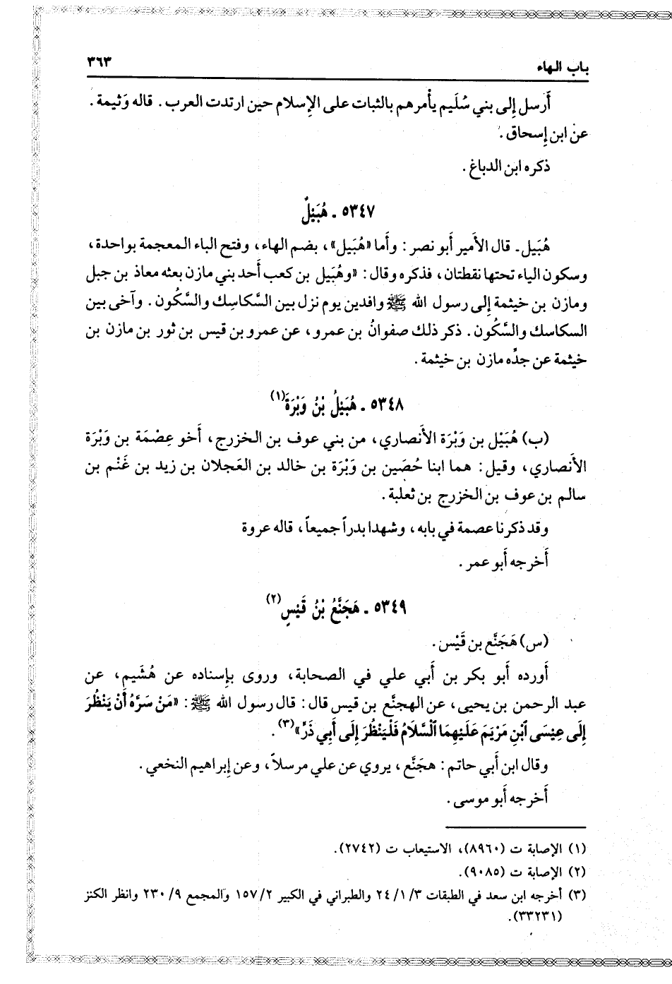 هبيل قَالَ الأمير أَبُو نصر: وأما هبيل، بضم الْهَاء، وفتح الباء المعجمة بواحدة، وسكون الياء تحتها نقطتان، فذكره وقال: وهبيل بن كعب أحد بني مازن بعثه معاذ بن جبل، ومازن بن خيثمة إلى رسول الله صَلَّى اللَّهُ عَلَيْهِ وَسَلَّمَ وافدين يوم نزل بين السكاسك والسكون، وآخى بين السكاسك والسكون، ذكر ذَلِكَ صفوان بن عَمْرو، عن عَمْرو بن قيس بن ثور بن مازن بن خيثمة، عن جده مازن بن خيثمة.