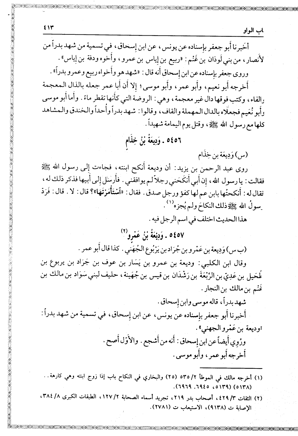 (١٦٩٢) أخبرنا أبو جَعْفَر بإسناده، عن يونس، عن ابن إسحاق، فِي تسمية من شهد بدرا: وديعة بن عَمْرو الجهني.