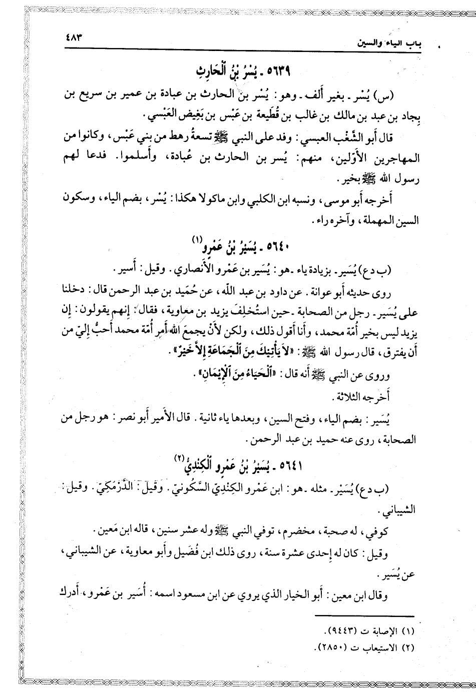 أخرجه أبو موسى، ونسبه ابن الكلبي، وابن ماكولا هكذا، يسر، بضم الياء، وسكون السِّين المهملة، وآخره راء.