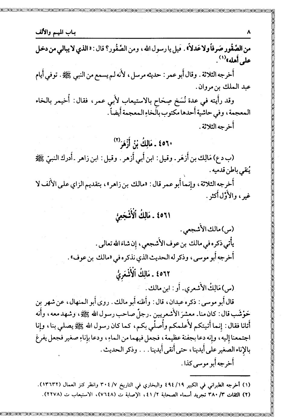 س: مالك الأشجعي يأتي ذكره فِي مالك بْن عوف الأشجعي، إن شاء اللَّه تعالى.
