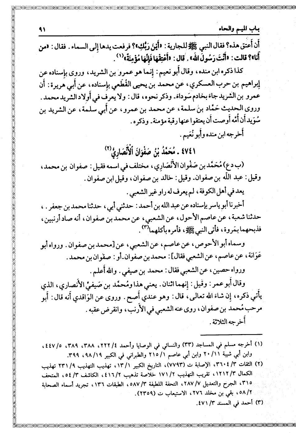 (١٤٧٧) أَخْبَرَنَا أَبُو يَاسِرٍ بِإِسْنَادِهِ، عن عَبْدِ اللَّهِ بْنِ أَحْمَدَ، حَدَّثَنِي أَبِي، حدثنا مُحَمَّدُ بْنُ جَعْفَرٍ، حدثنا شُعْبَةُ، عن عَاصِمٍ الأَحْوَلِ، عن الشَّعْبِيِّ، عن مُحَمَّدِ بْنِ صَفْوَانَ: أَنَّهُ صَادَ أَرْنَبَيْنِ، فَذَبَحَهُمَا بِمَرْوَةَ، " فَأَتَى النَّبِيَّ صَلَّى اللَّهُ عَلَيْهِ وَسَلَّمَ فَأَمَرَهُ بِأَكْلِهِمَا ".