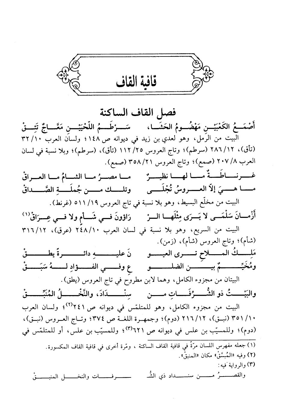 (¬1) جعله مفهرس اللسان مرَةً في قافية القاف الساكنة، ومرة أخرى في قافية القاف المكسورة.