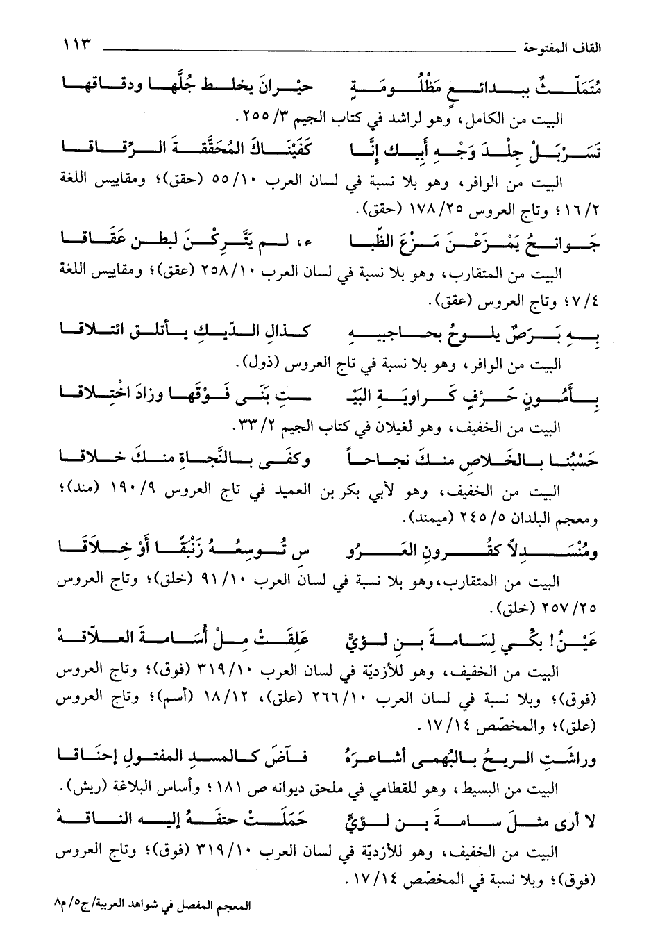 البيت من الخفيف، وهو للأزديّة في لسان العرب 10/ 319 (فوق)؛ وتاج العروس (فوق)؛ وبلا نسبة في لسان العرب 10/ 266 (علق)، 12/ 18 (أسم)؛ وتاج العروس (علق)؛ والمخصّص 14/ 17.
