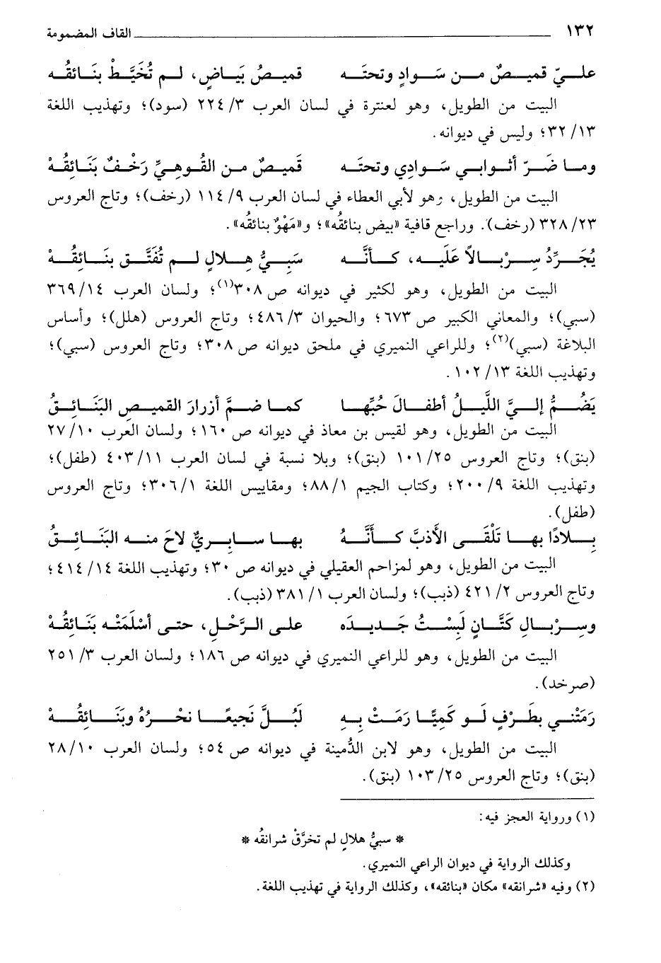 (¬2) وفيه "شرانقه" مكان "بنائقه"، وكذلك الرواية في تهذيب اللغة.