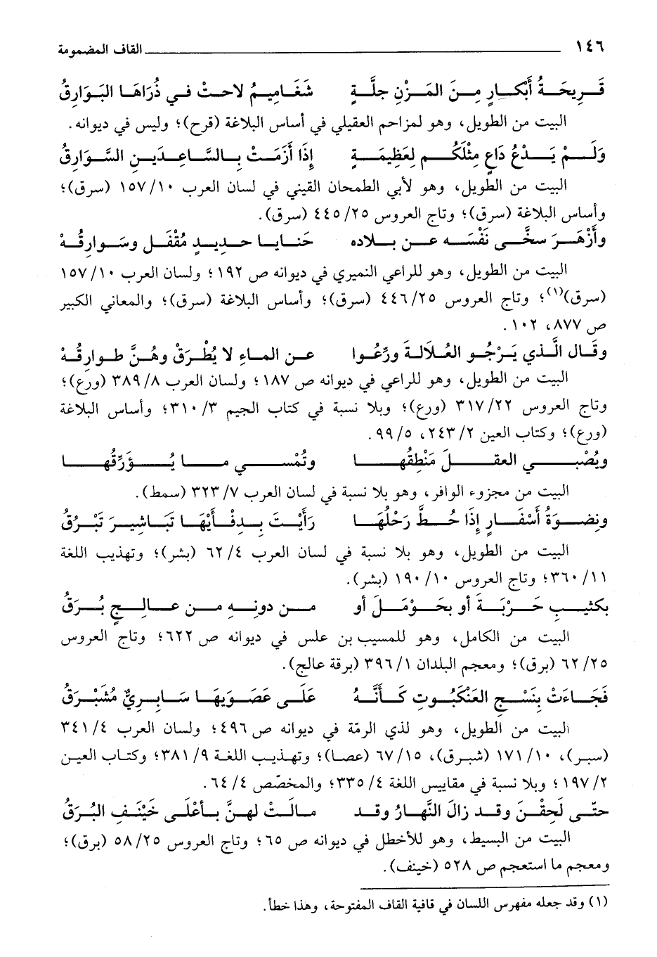 (¬1) وقد جعله مفهرس اللسان في قافية القاف المفتوحة، وهذا خطأ.