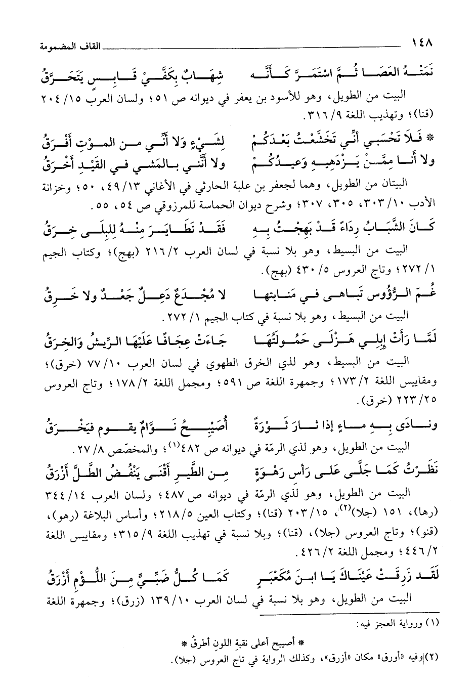 البيت من البسيط، وهو لذي الخرق الطهوي في لسان العرب 10/ 77 (خرق)؛ ومقاييس اللغة 2/ 173؛ وجمهرة اللغة ص 591؛ ومجمل اللغة 2/ 178؛ وتاج العروس 25/ 223 (خرق).