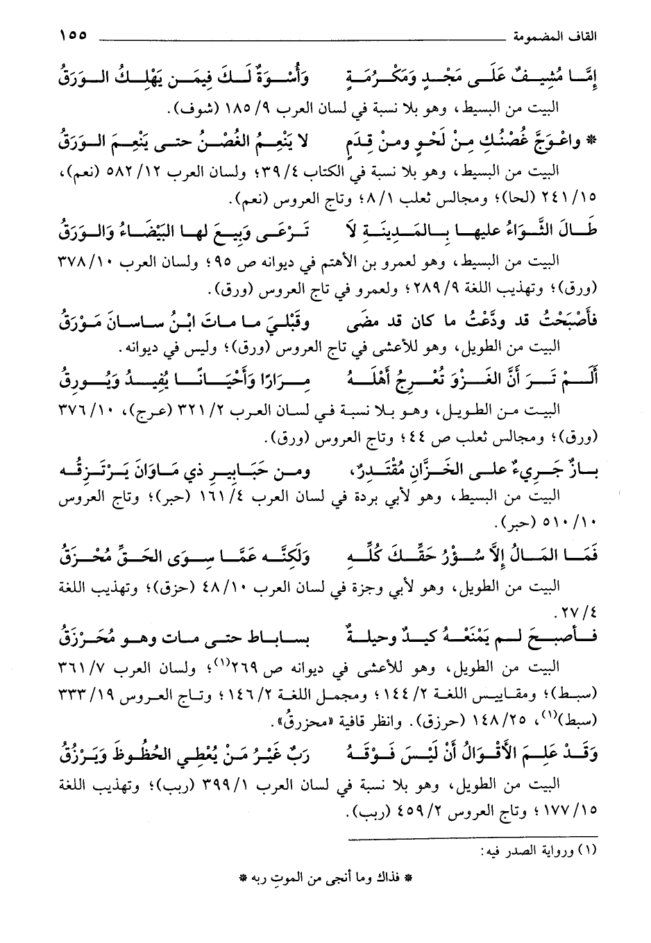 ألمْ تَرَ أنَّ الغَزْوَ تُعْرِجُ أَهْلَهُ ... مِرَارًا وَأَحْيَانًا يُفيدُ وَيُورِقُ