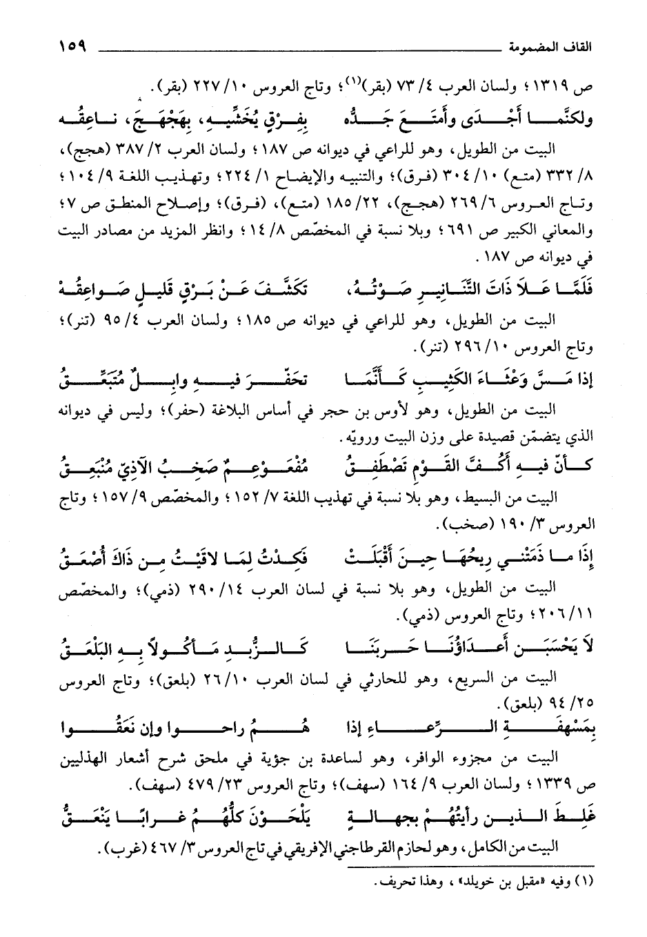 البيت من الطويل، وهو لأوس بن حجر في أساس البلاغة (حفر)؛ وليس في ديوانه الذي يتضمّن قصيدة على وزن البيت ورويّه.