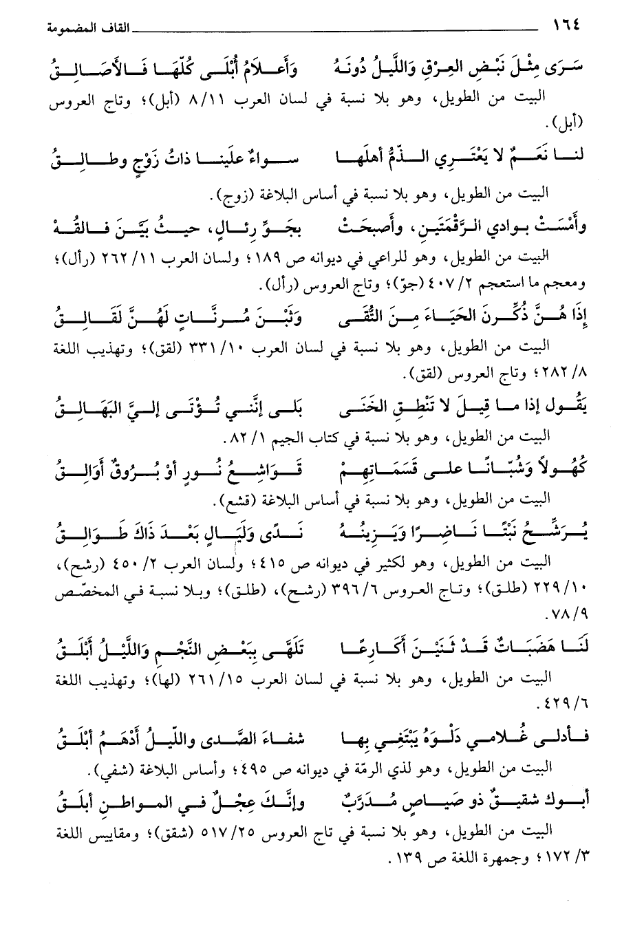 لَنَا هَضَبَاتٌ قَدْ ثَنَيْنَ أَكَارِعًا ... تَلَهَّى بِبَعْضِ النَّجْمِ وَاللَّيْلُ أَبْلَقُ