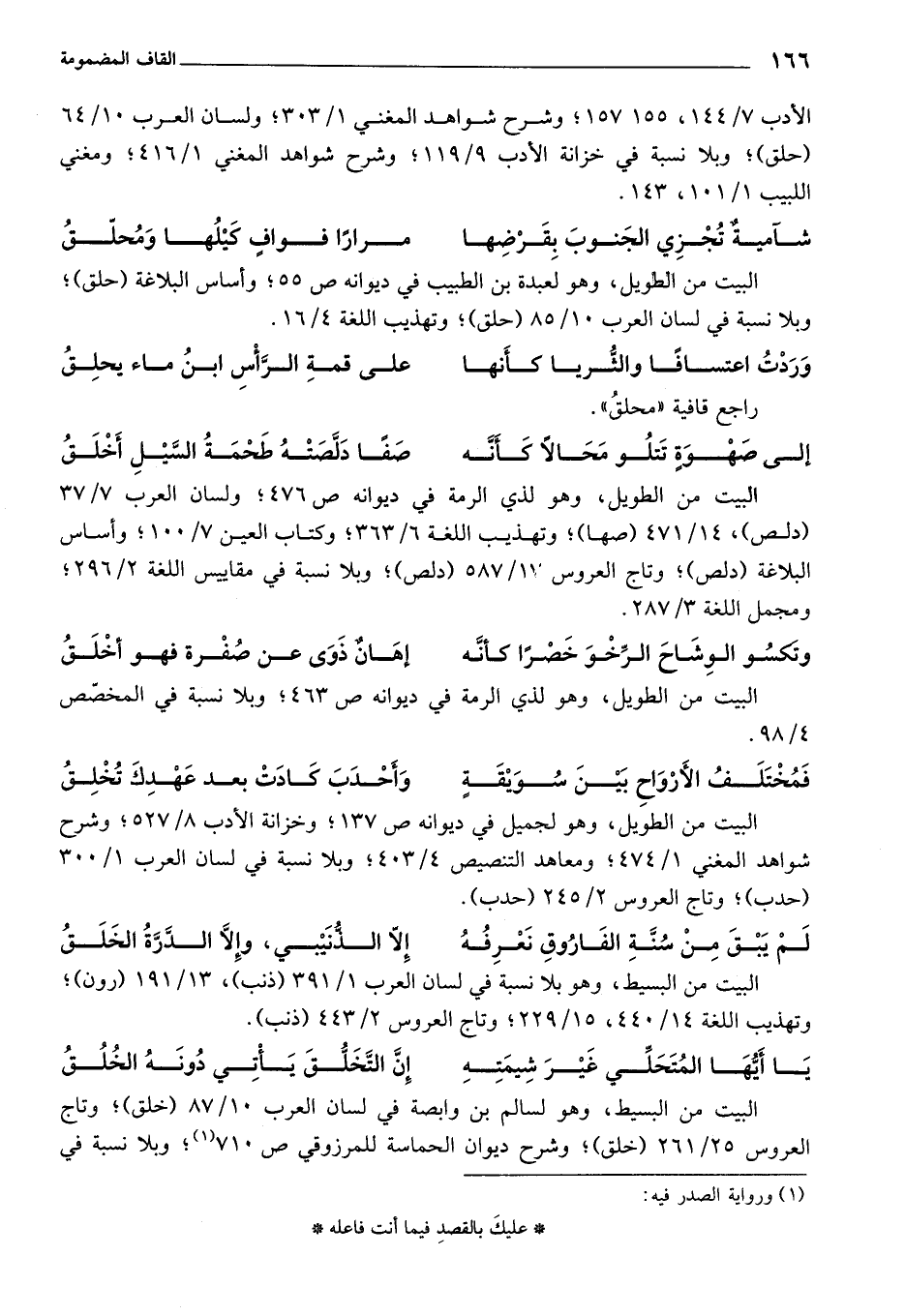 الأدب 7/ 144، 155، 157؛ وشرح شواهد المغني 1/ 303؛ ولسان العرب 10/ 64 (حلق)؛ وبلا نسبة في خزانة الأدب 9/ 119؛ وشرح شواهد المغني 1/ 416؛ ومغني اللبيب 1/ 101، 143.