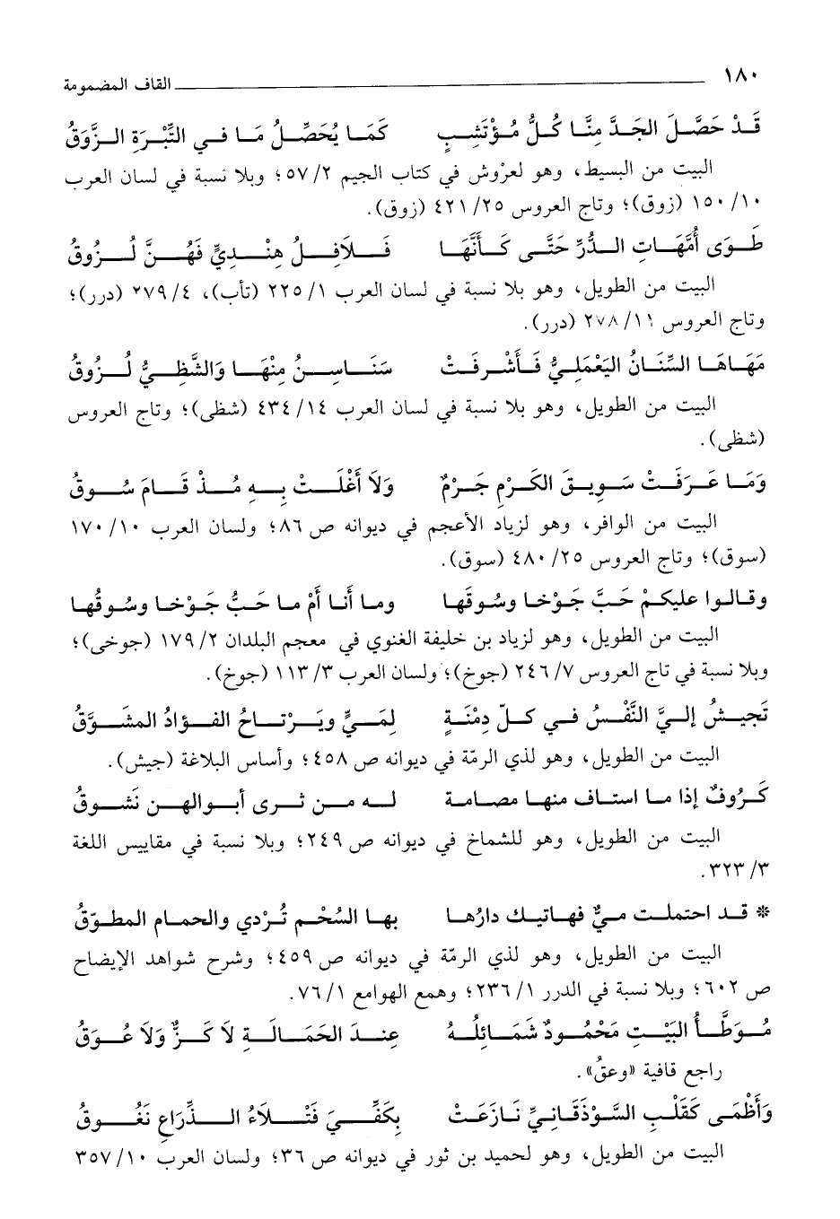 البيت من البسيط، وهو لعرُوش في كتاب الجيم 2/ 57؛ وبلا نسبة في لسان العرب 10/ 150 (زوق)؛ وتاج العروس 25/ 421 (زوق).
