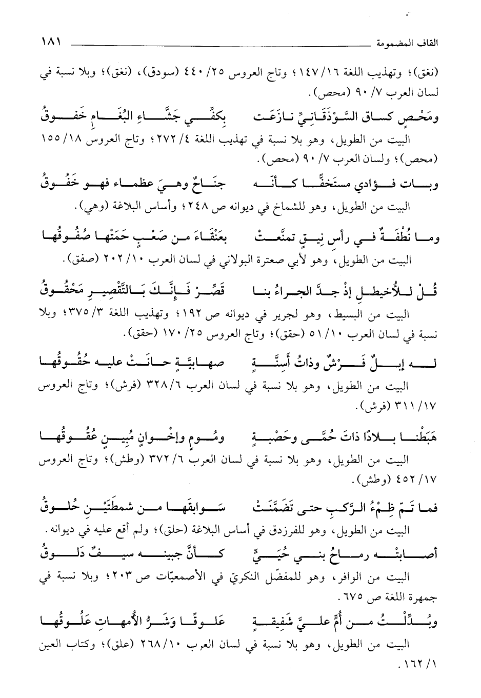 (نغق)؛ وتهذيب اللغة 16/ 147؛ وتاج العروس 25/ 440 (سودق)، (نغق)؛ وبلا نسبة في لسان العرب 7/ 90 (محص).
