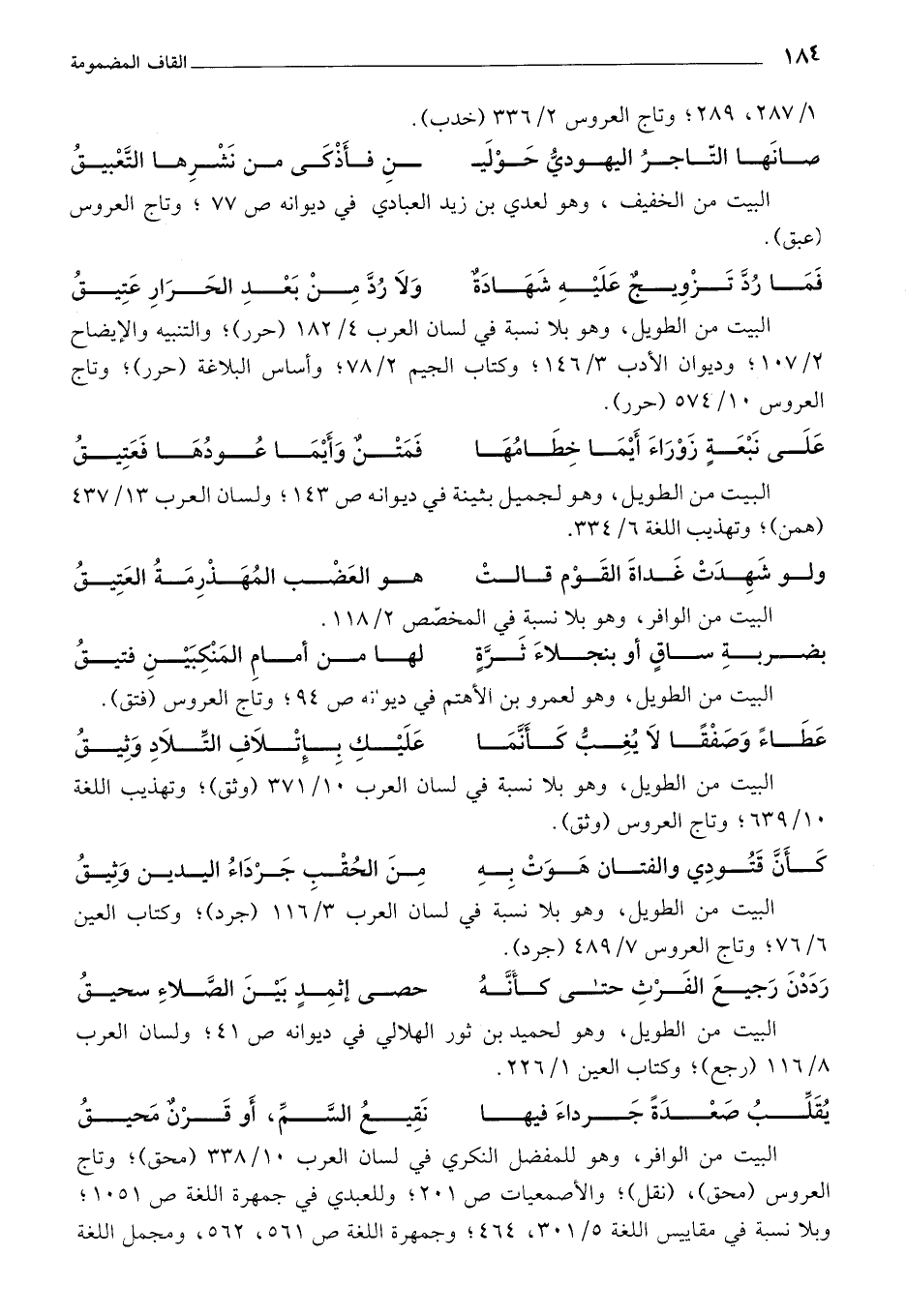 البيت من الوافر، وهو للمفضل النكري في لسان العرب 10/ 338 (محق)؛ وتاج العروس (محق)، (نقل)؛ والأصمعيات ص 201؛ وللعبدي في جمهرة اللغة ص 1051؛ وبلا نسبة في مقاييس اللغة 5/ 301، 464؛ وجمهرة اللغة ص 561، 562، ومجمل اللغة