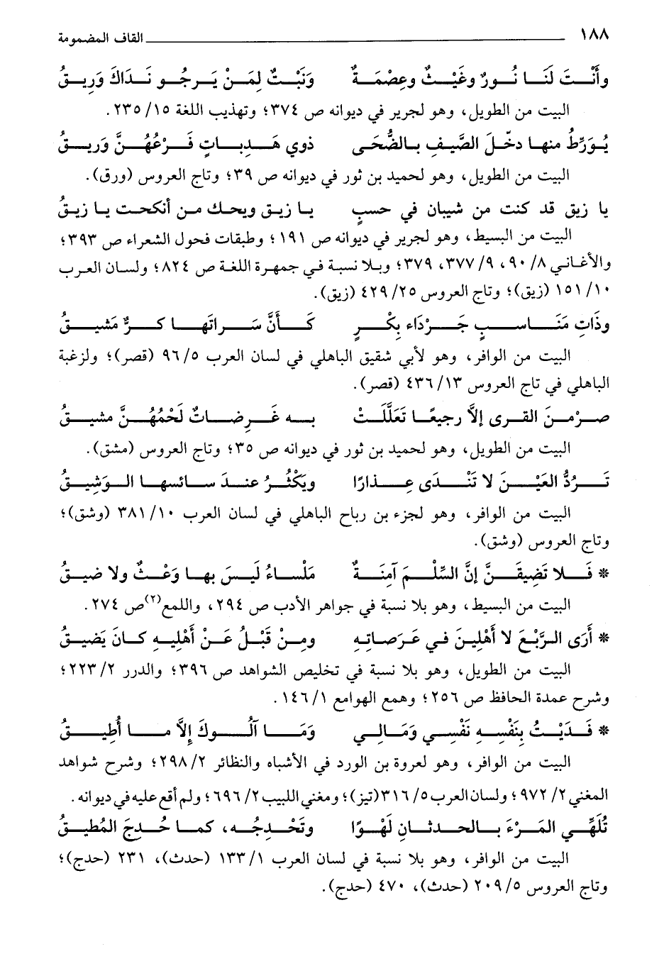 البيت من البسيط، وهو لجرير في ديوانه ص 191؛ وطبقات فحول الشعراء ص 393؛ والأغاني 8/ 90، 9/ 377، 379؛ وبلا نسبة في جمهرة اللغة ص 824؛ ولسان العرب 10/ 151 (زيق)؛ وتاج العروس 25/ 429 (زيق).