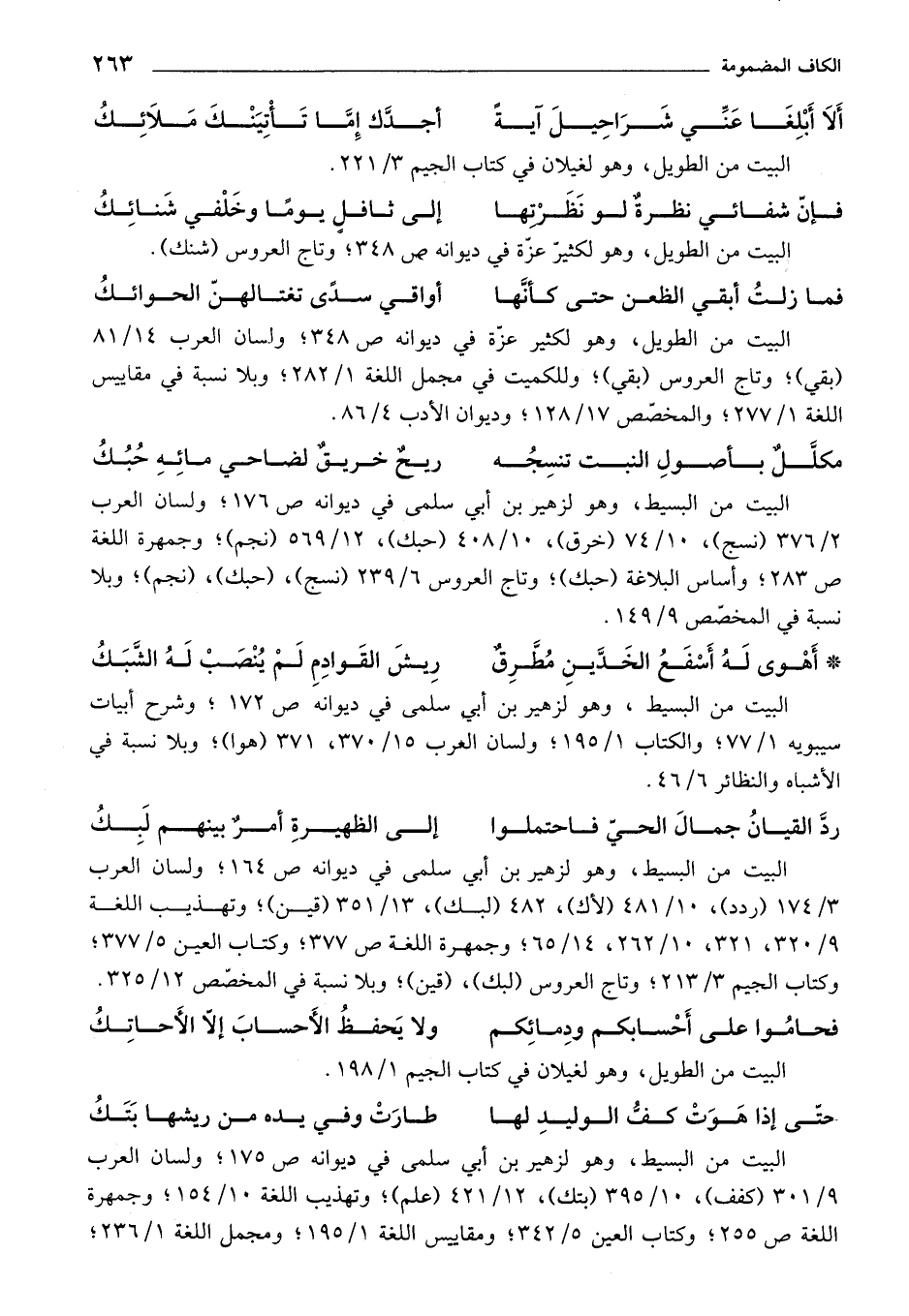 البيت من البسيط، وهو لزهير بن أبي سلمى في ديوانه ص 175؛ ولسان العرب 9/ 301 (كفف)، 10/ 395 (بتك)، 12/ 421 (علم)؛ وتهذيب اللغة 10/ 154؛ وجمهرة اللغة ص 255؛ وكتاب العين 5/ 342؛ ومقاييس اللغة 1/ 195؛ ومجمل اللغة 1/ 236؛