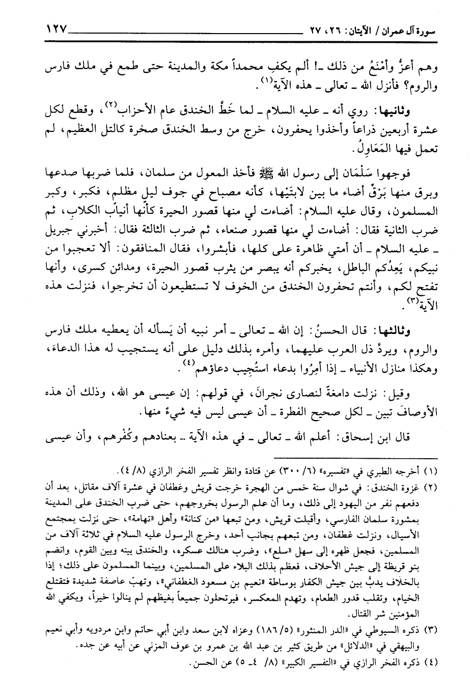وهم أعزُّ وأمْنَعُ من ذلك -! ألم يكفِ محمداً مكة والمدينة حتى طمع في ملك فارس والروم؟ فأنزل الله - تعالى - هذه الآية.