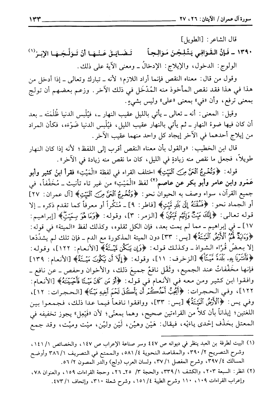 وقول من قال: معناه النقص فإنما أراد اللازم؛ لأنه - تبارك وتعالى - إذا أدخل من هذا في هذا فقد نقص المأخوذ منه المُدْخَل في ذلك الآخر. وزعم بعضهم أن تولج بمعنى ترفع، وأن «في» بمعنى «على» وليس بشيءٍ.