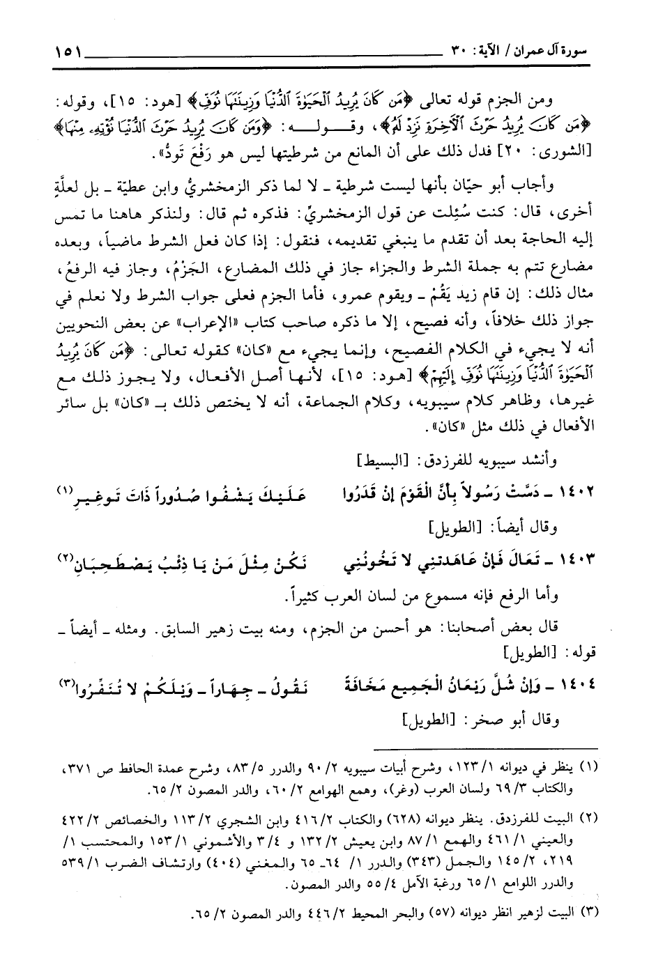 ومن الجزم قوله تعالى {مَن كَانَ يُرِيدُ الحياة الدنيا وَزِينَتَهَا نُوَفِّ} [هود: 15] ، وقوله: {مَن كَانَ يُرِيدُ حَرْثَ الآخرة نَزِدْ لَهُ} [الشورى: 20] ، وقوله: {وَمَن كَانَ يُرِيدُ حَرْثَ الدنيا نُؤْتِهِ مِنْهَا} [الشورى: 20] فدل ذلك على أن المانع من شرطيتها ليس هو رَفْعَ تَودُّ» .