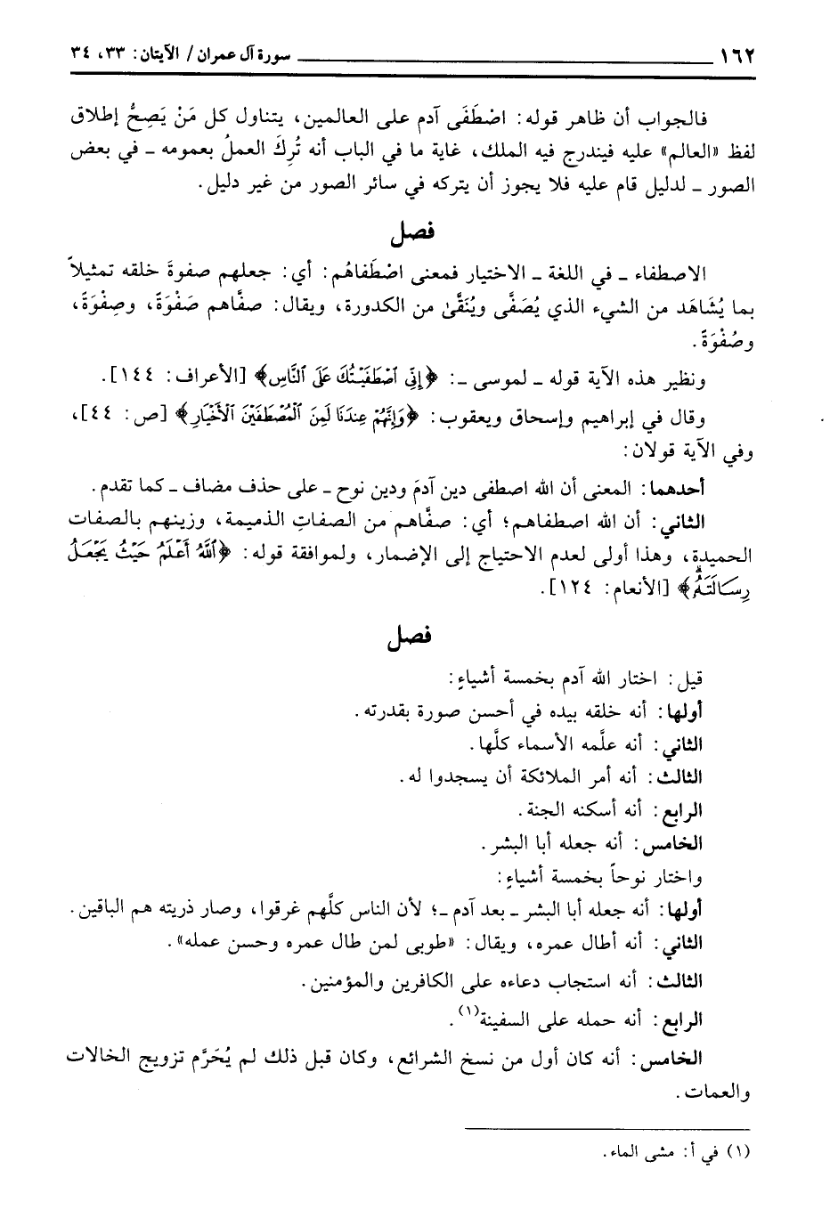 الثاني: أن الله اصطفاهم؛ أي: صفَّاهم من الصفاتِ الذميمة، وزينهم بالصفات الحميدة، وهذا أولى لعدم الاحتياج إلى الإضمار، ولموافقة قوله: {الله أَعْلَمُ حَيْثُ يَجْعَلُ رِسَالَتَهُ} [الأنعام: 124] .