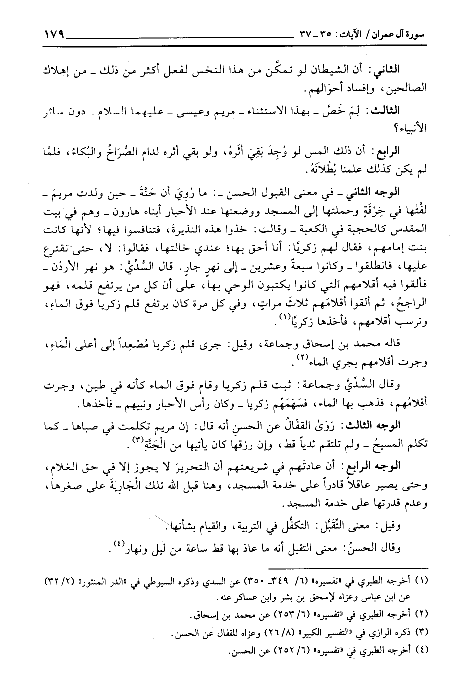 الوجه الثاني - في معنى القبول الحسن -: ما رُوِيَ أن حَنَّةَ - حين ولدت مريمَ - لفَّتْها في خِرْقَةٍ وحملتها إلى المسجد ووضعتها عند الأحبار أبناء هارون - وهم في بيت المقدس كالحجبة في الكعبة - وقالت: خذوا هذه النذيرةَ، فتنافسوا فيها؛ لأنها كانت بنت إمامهم، فقال لهم زكريَّا: أنا أحق بها؛ عندي خالتها، فقالوا: لا، حتى نقترع عليها، فانطلقوا - وكانوا سبعةً وعشرين - إلى نهرٍ جارٍ.