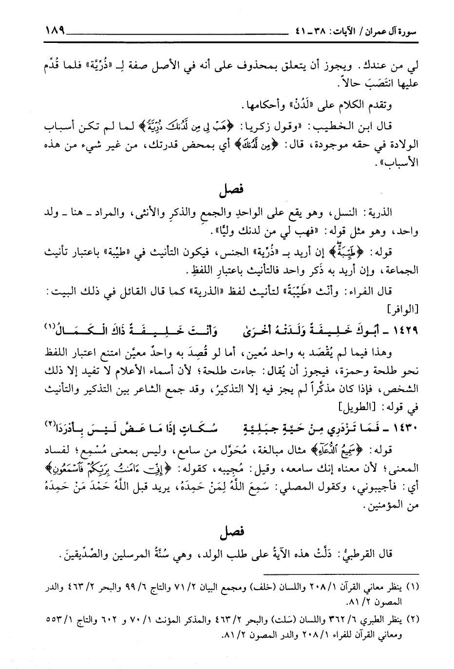 قال القرطبيُّ: دَلَّتْ هذه الآيةُ على طلب الولد، وهي سُنَّةُ المرسلين والصِّدِّيقينَ.